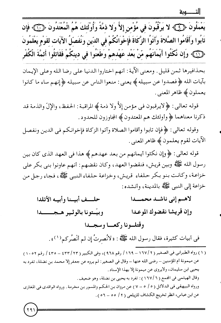 {يعْملُونَ (9) لَا يرقبون فِي مُؤمن إِلَّا وَلَا ذمَّة وَأُولَئِكَ هم المعتدون (10) فَإِن تَابُوا وَأَقَامُوا الصَّلَاة وَآتوا الزَّكَاة فإخوانكم فِي الدّين ونفصل الْآيَات لقوم يعلمُونَ (11) وَإِن نكثوا أَيْمَانهم من بعد عَهدهم وطعنوا فِي دينكُمْ فَقَاتلُوا أَئِمَّة الْكفْر} بحذافيرها ثمن قَلِيل. وَمعنى الْآيَة: أَنهم اخْتَارُوا الدُّنْيَا على رضَا الله وعَلى الْإِيمَان بآيَات الله {فصدوا عَن سَبيله} يَعْنِي: منعُوا النَّاس عَن سَبيله {إِنَّهُم سَاءَ مَا كَانُوا يعْملُونَ} ظَاهر الْمَعْنى.