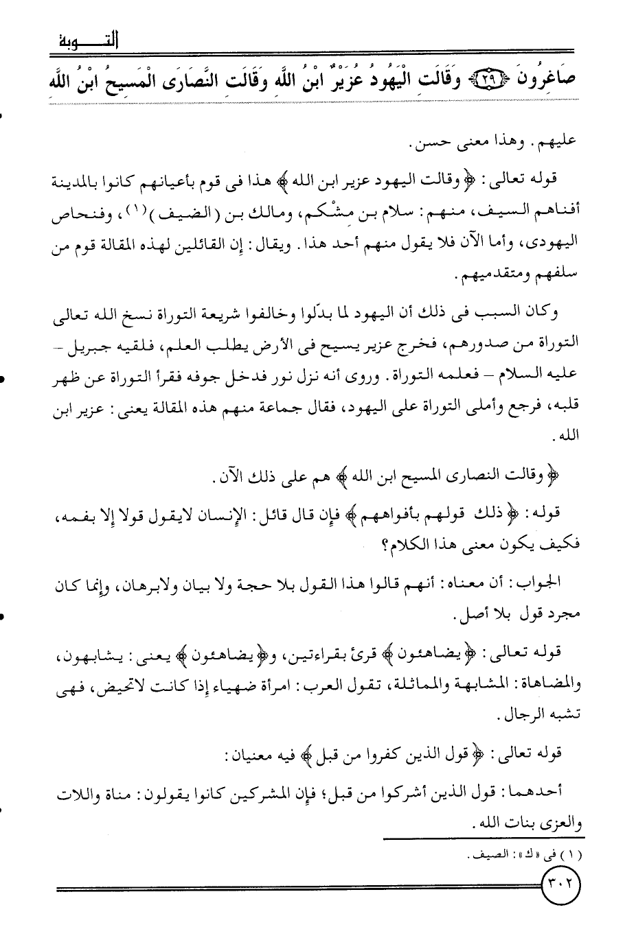 {صاغرون (29) وَقَالَت الْيَهُود عُزَيْر ابْن الله وَقَالَت النَّصَارَى الْمَسِيح ابْن الله} عَلَيْهِم. وَهَذَا معنى حسن.