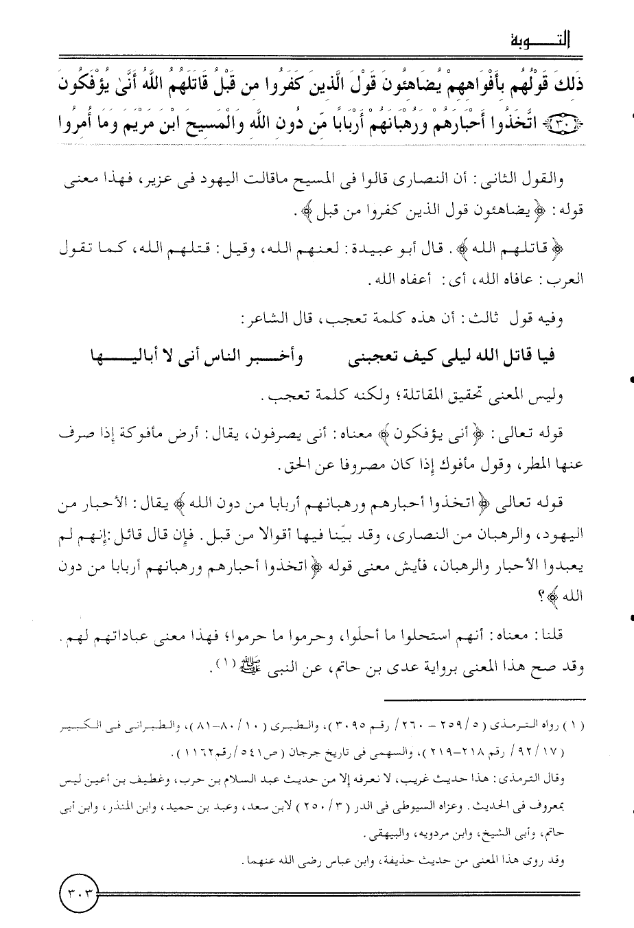 {ذَلِك قَوْلهم بأفواههم يضاهئون قَول الَّذين كفرُوا من قبل قَاتلهم الله أَنى يؤفكون (30) اتَّخذُوا أَحْبَارهم وَرُهْبَانهمْ أَرْبَابًا من دون الله والمسيح ابْن مَرْيَم وَمَا أمروا}
