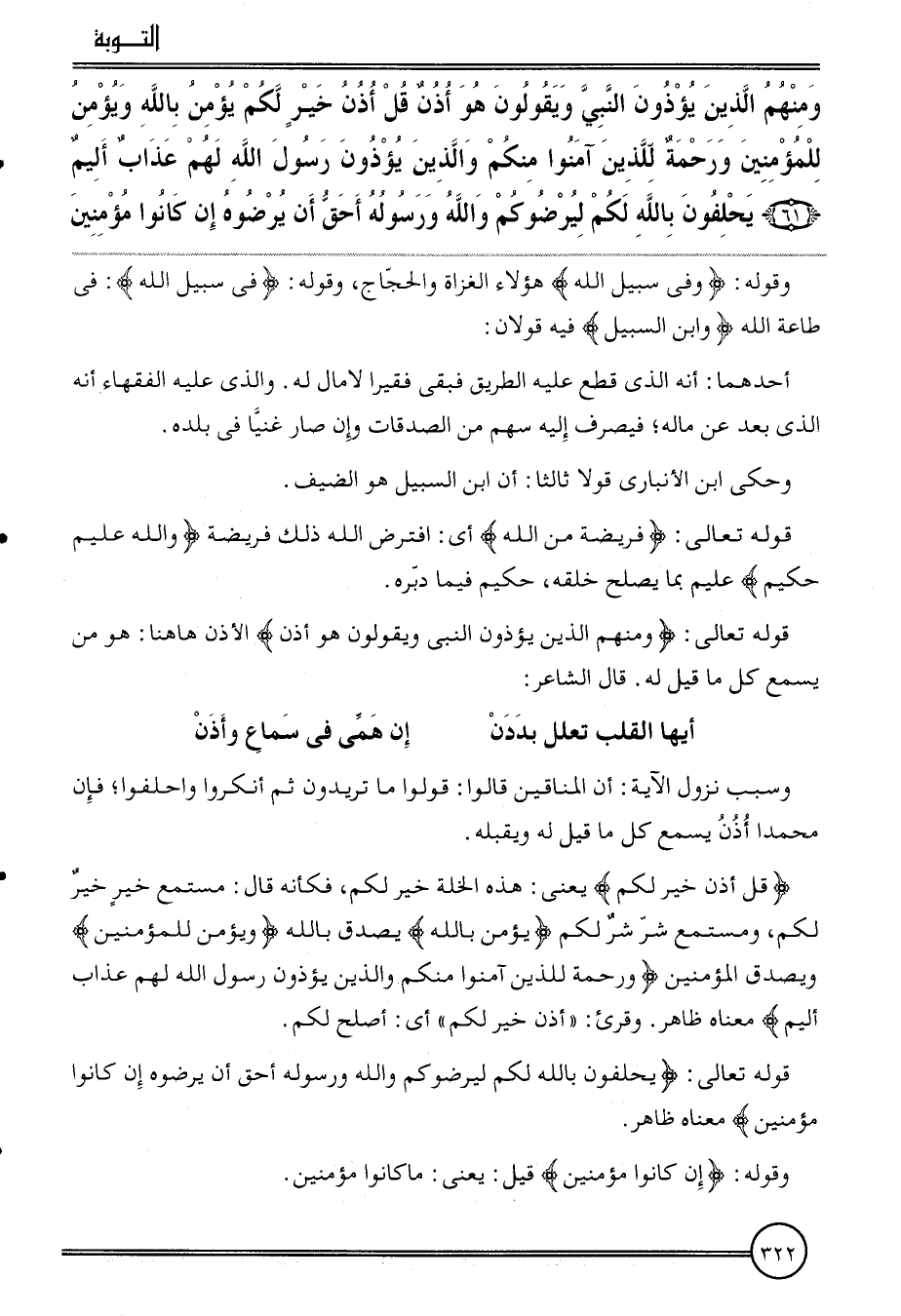 {وَمِنْهُم الَّذين يُؤْذونَ النَّبِي وَيَقُولُونَ هُوَ أذن قل أذن خير لكم يُؤمن بِاللَّه ويؤمن للْمُؤْمِنين وَرَحْمَة للَّذين آمنُوا مِنْكُم وَالَّذين يُؤْذونَ رَسُول الله لَهُم عَذَاب أَلِيم (61) يحلفُونَ بِاللَّه لكم ليرضوكم وَالله وَرَسُوله أَحَق أَن يرضوه إِن كَانُوا مُؤمنين}