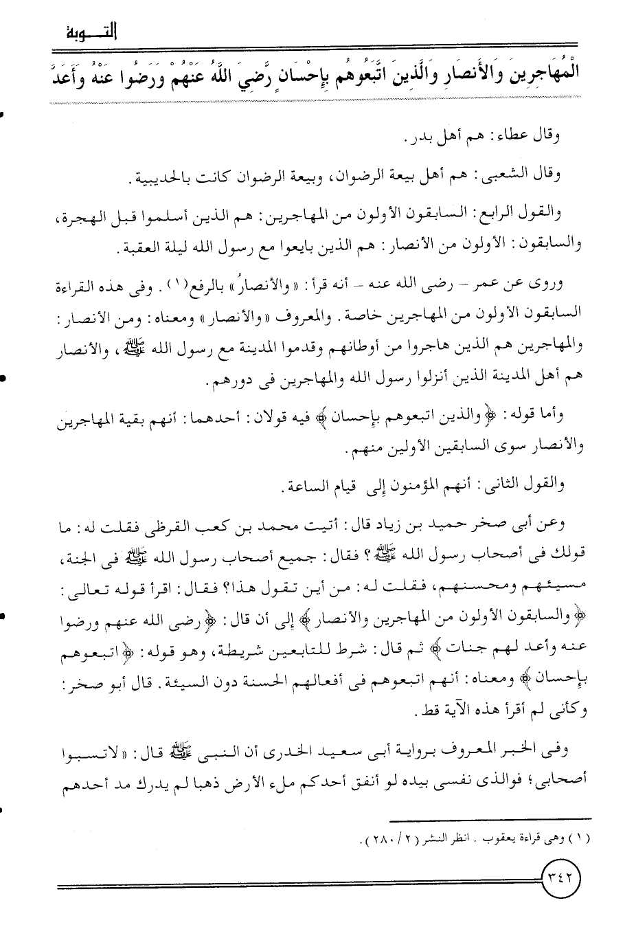 {الْمُهَاجِرين وَالْأَنْصَار وَالَّذين اتَّبَعُوهُمْ بِإِحْسَان رَضِي الله عَنْهُم وَرَضوا عَنهُ وَأعد}