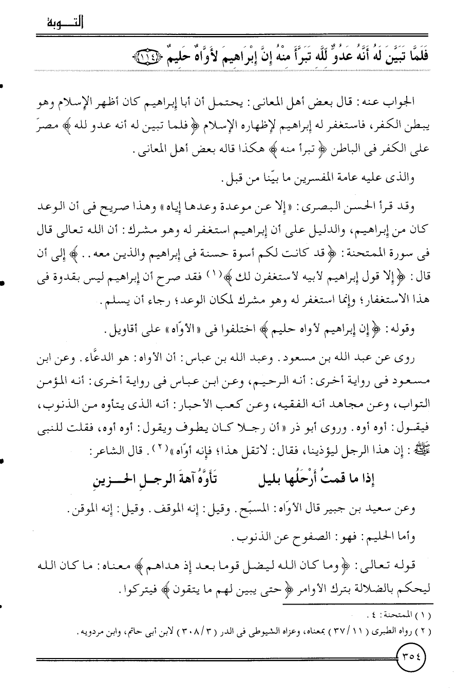 {فَلَمَّا تبين لَهُ أَنه عَدو لله تَبرأ مِنْهُ إِن إِبْرَاهِيم لأواه حَلِيم (114) }