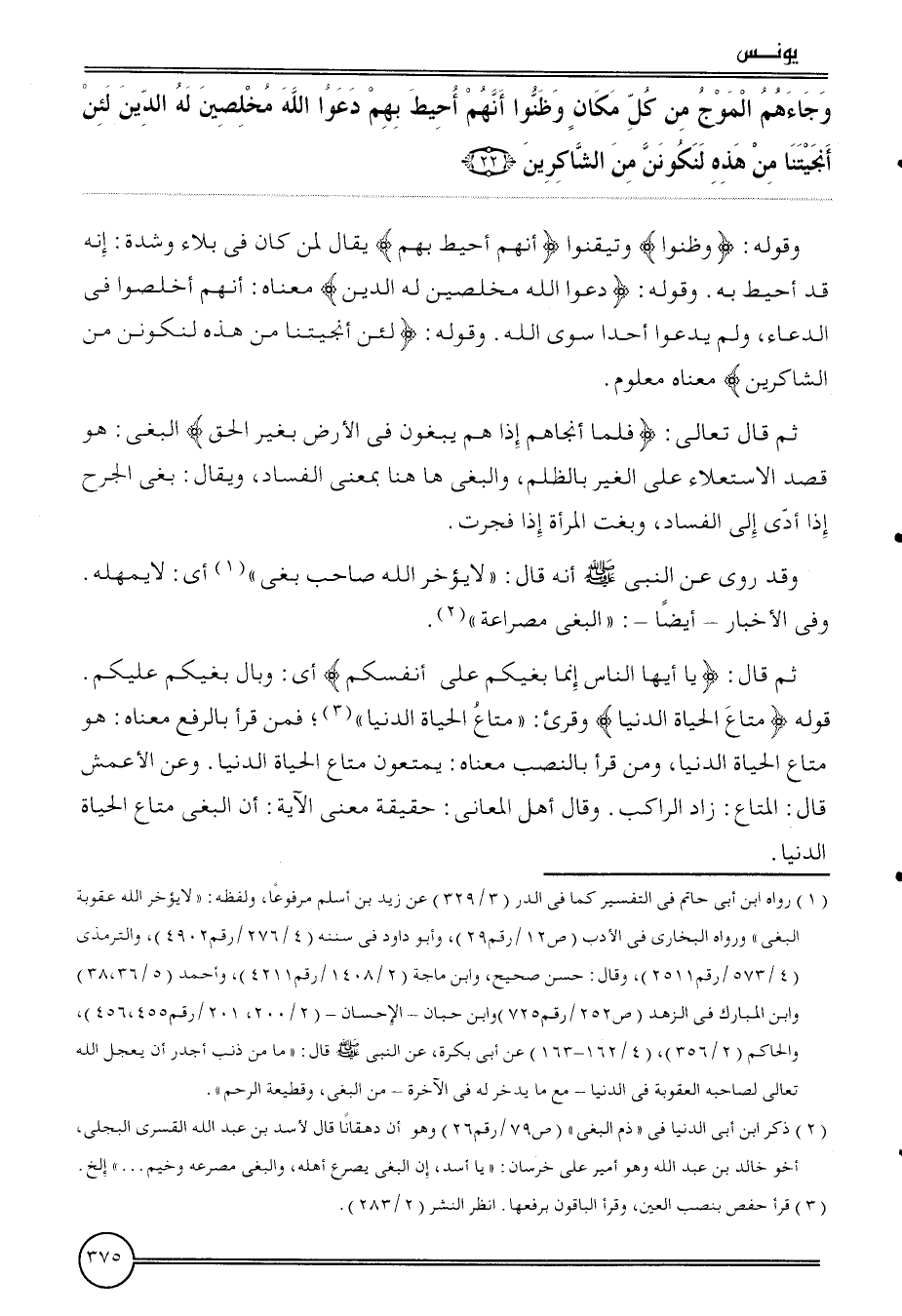 ثمَّ قَالَ تَعَالَى: {فَلَمَّا أنجاهم إِذا هم يَبْغُونَ فِي الأَرْض بِغَيْر الْحق} الْبَغي: هُوَ قصد الاستعلاء على الْغَيْر بالظلم، وَالْبَغي هَا هُنَا بِمَعْنى الْفساد، وَيُقَال: بغي الْجرْح إِذا أدّى إِلَى الْفساد، وبغت الْمَرْأَة إِذا فجرت.