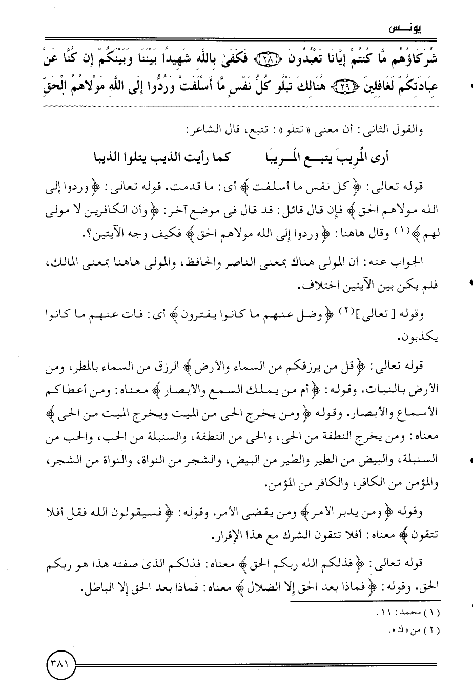 قَوْله تَعَالَى: {كل نفس مَا أسلفت} أَي: مَا قدمت. قَوْله تَعَالَى: {وردوا إِلَى الله مَوْلَاهُم الْحق} فَإِن قَالَ قَائِل: قد قَالَ فِي مَوضِع آخر: {وَأَن الْكَافرين لَا مولى لَهُم} وَقَالَ هَاهُنَا: {وردوا إِلَى الله مَوْلَاهُم الْحق} فَكيف وَجه الْآيَتَيْنِ؟ .