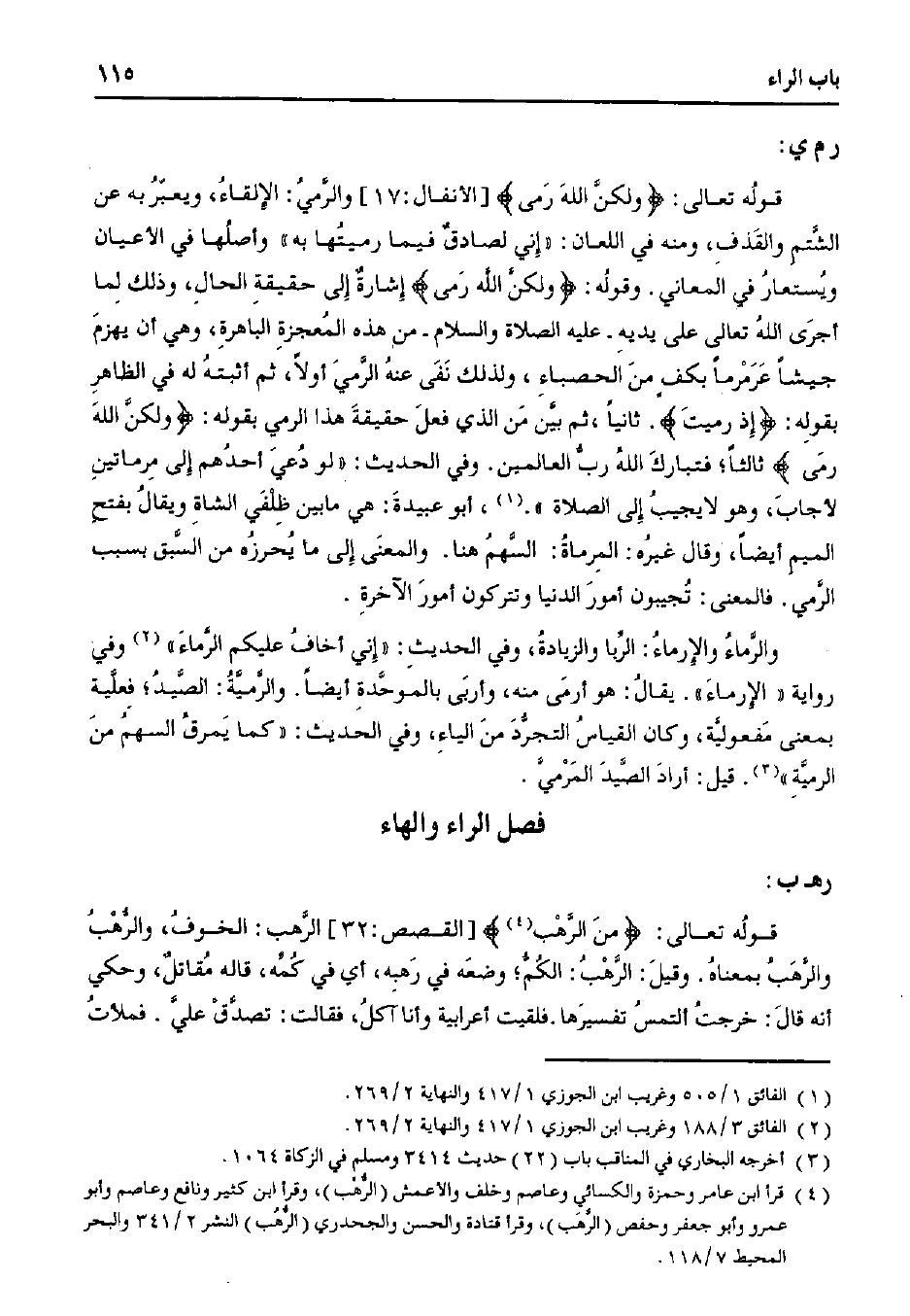 قوله تعالى:} من الرهب {[القصص: 32] الرهب: الخوف، والرهب والرهب بمعناه. وقيل: الرهب: الكم؛ وضعه في رهبه، أي في كمه، قاله مقاتل، وحكي أنه قال: خرجت ألتمس تفسيرها. فلقيت أعرابية وأنا آكل، فقالت: تصدق علي. فملأت