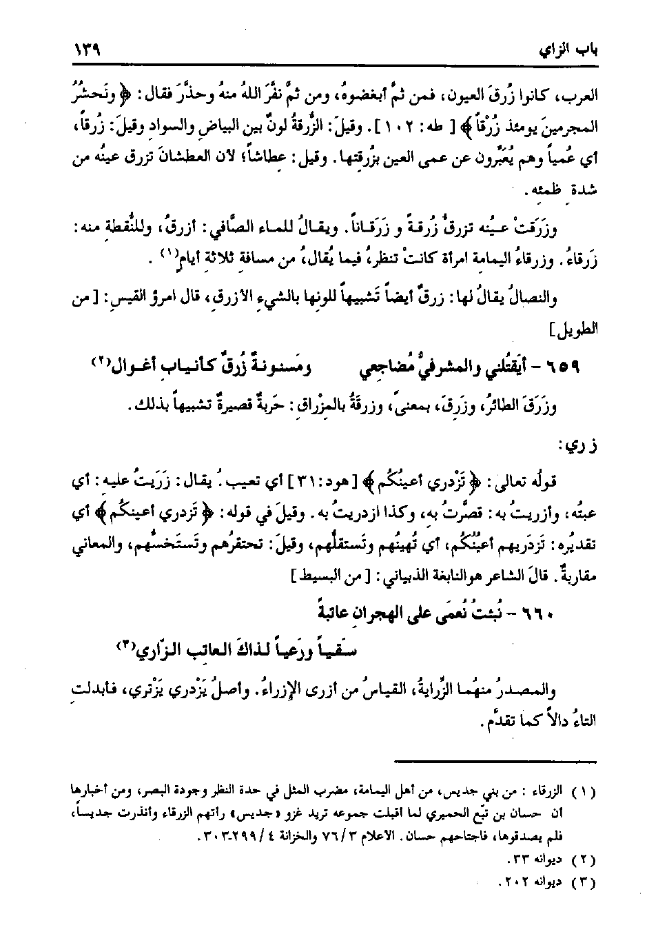 قوله تعالى:} تزدري أعينكم {[هود: 31] أي تعيب. يقال: زريت عليه: أي عبته، وأزريت به: قصرت به، وكذا ازدريت به. وقيل في قوله:} تزدري أعينكم {أي تقديره: تزدريهم أعينكم، أي تهينهم وتستقلهم، وقيل: تحتقرهم وتستخسهم، والمعاني مقاربة. قال الشاعر هو النابغة الذبياني: [من البسيط]