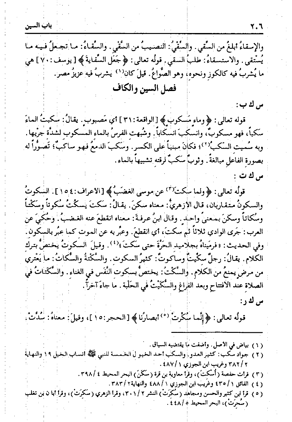 قوله تعالى: {ولما سكت عن موسى الغضب} [الأعراف: 154]. السكوت والسكون متقاربان، قال الأزهري: معناه سكن. يقال: سكت يسكت سكوتًا وسكتًا وسكاتًا وسكن بمعنىً واحدٍ. وقال ابن عرفة: معناه انقطع عنه الغضب. وحكي عن العرب: جرى الوادي ثلاثًا ثم سكت، أي انقطع. وعبر به عن الموت كما عبر بالسكون. وفي الحديث: «فرميناه بجلاميد الحرة حتى سكت». وقيل السكوت يختص بترك الكلام. يقال: رجل سكيتٌ وساكوتٌ: كثير السكوت. والسكتة والسكات: ما يعتري من مرضٍ يمنع من الكلام. والسكت: يختص بسكوت النفس في الغناء. والسكتات في الصلاة عند الافتتاح وبعد الفراغ والسكيت في الحلبة. ما جاء آخرًا.
