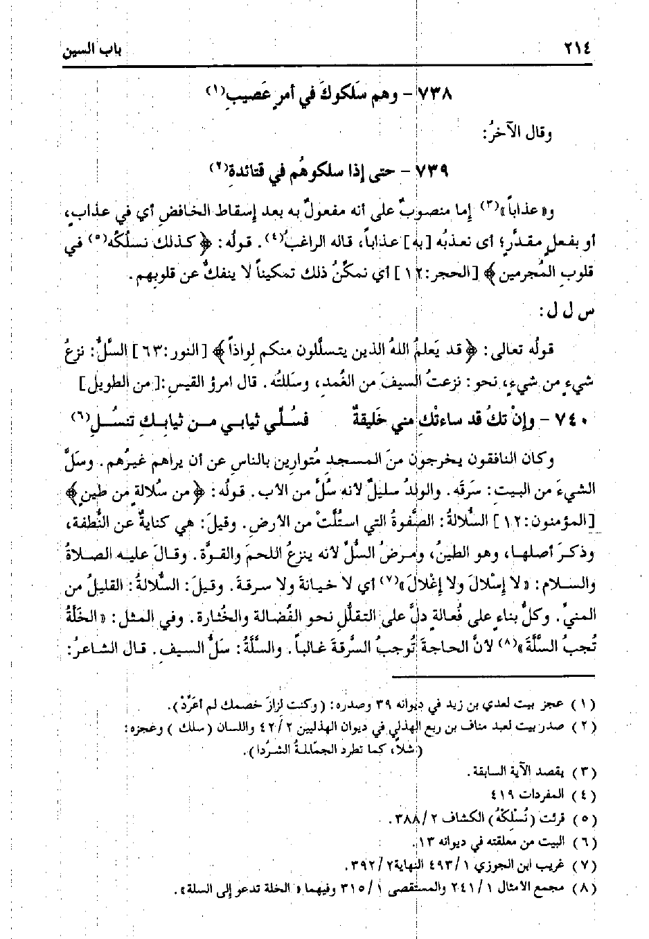 قوله تعالى: {قد يعلم الله الذين يتسللون منكم لواذًا} [النور: 63] السل: نزع شيء من شيء، نحو: نزعت السيف من الغمد، وسللته. قال امرؤ القيس: [من الطويل]