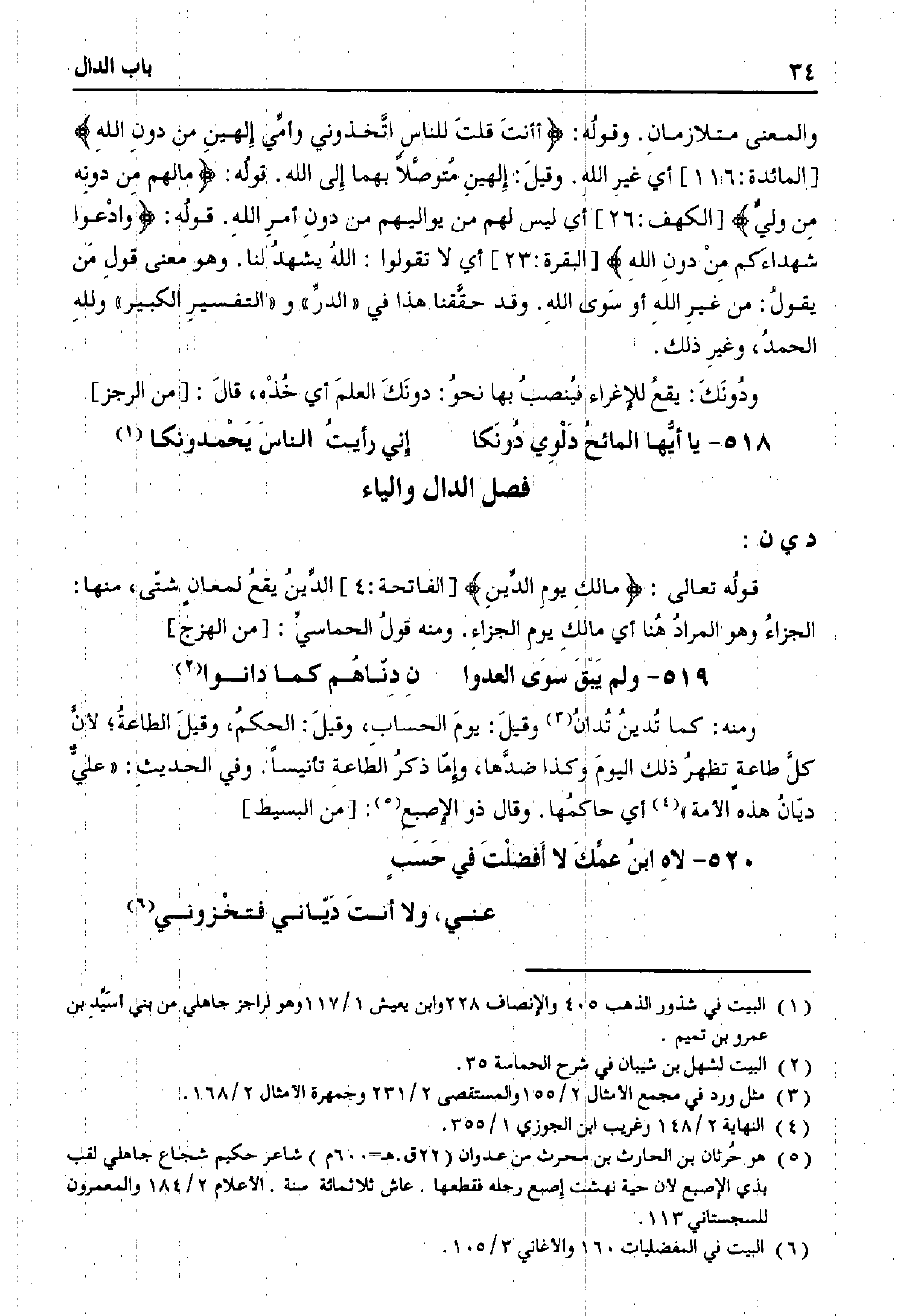 قوله تعالى:} مالك يوم الدين {[الفاتحة: 4] الدين يقع لمعانٍ شتى، منها: الجزاء وهو المراد هنا أي مالك يوم الجزاء. ومنه قول الحماسي: [من الهزج]