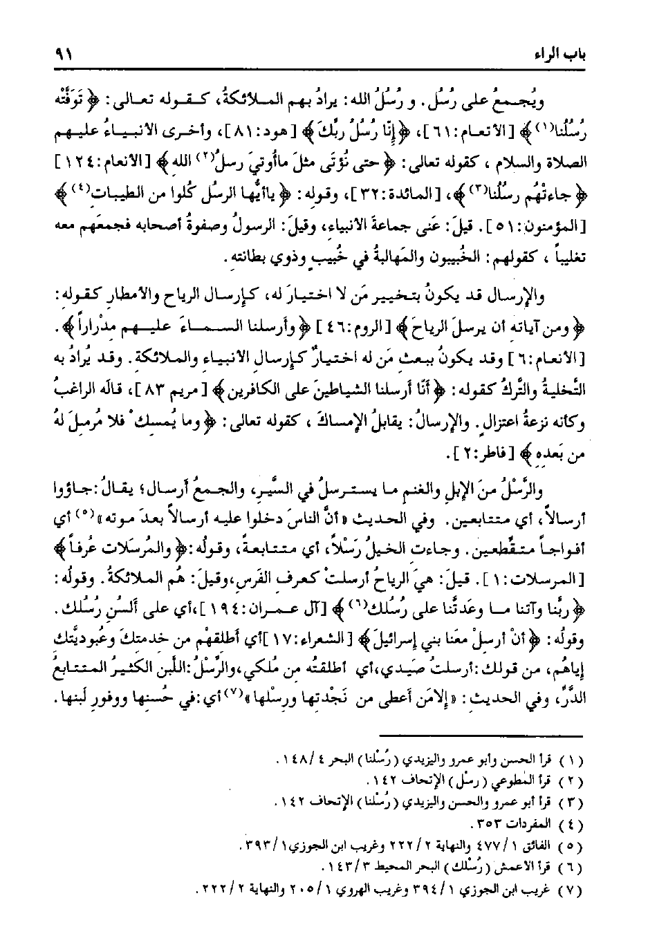ويجمع على رسل. ورسل الله: يراد بهم الملائكة، كقوله تعالى:} توفته رسلنا {[الأنعام: 61]،} إنا رسل ربك {[هود: 81]، وأخرى الأنبياء عليهم الصلاة والسلام، كقوله تعالى:} حتى نؤتى مثل ما أوتي رسل الله {[الأنعام: 124]} جاءتهم رسلنا {، [المائدة: 32]، وقوله:} يا أيها الرسل كلوا من الطيبات {[المؤمنون: 51]. قيل: عنى جماعة الأنبياء، وقيل: الرسول وصفوة أصحابه فجمعهم معه تغليبًا، كقولهم: الخبيبون والمهالبة في خبيبٍ وذوي بطانته.