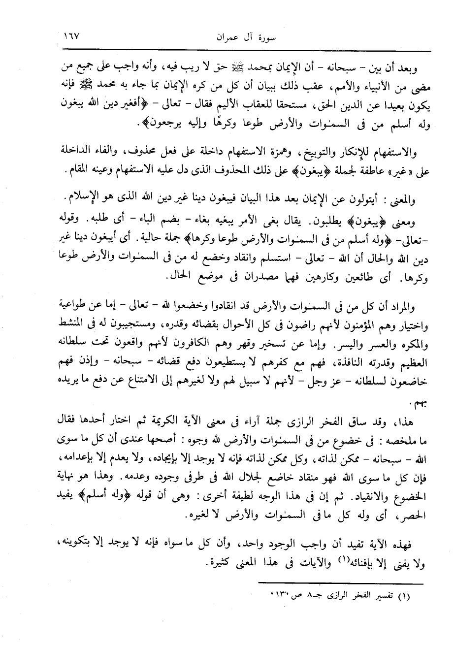 (1) تفسير الفخر الرازي ج 8 ص 130.