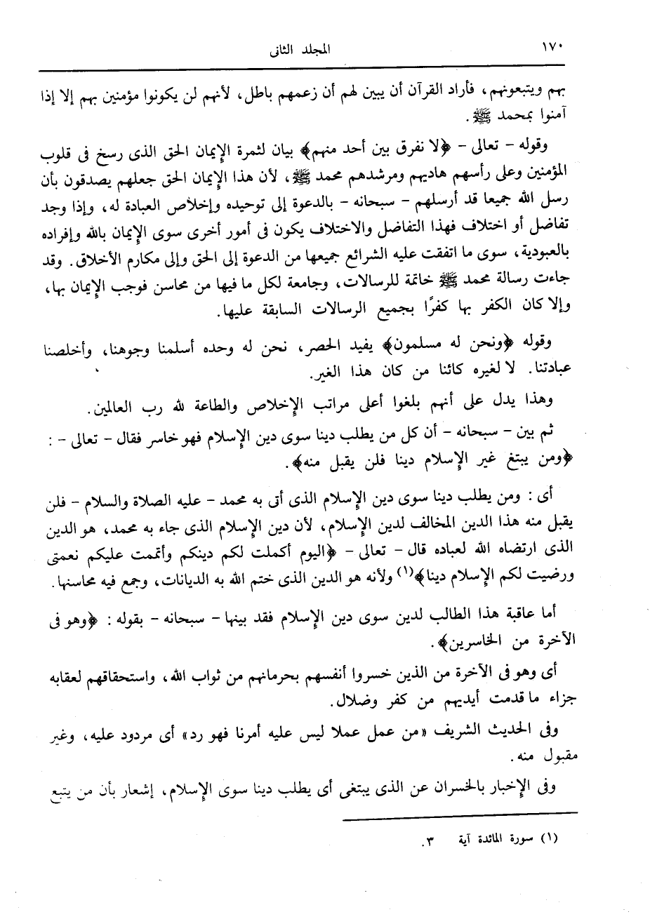 «وَمَنْ يَبْتَغِ غَيْرَ الْإِسْلامِ دِيناً فَلَنْ يُقْبَلَ مِنْهُ» .