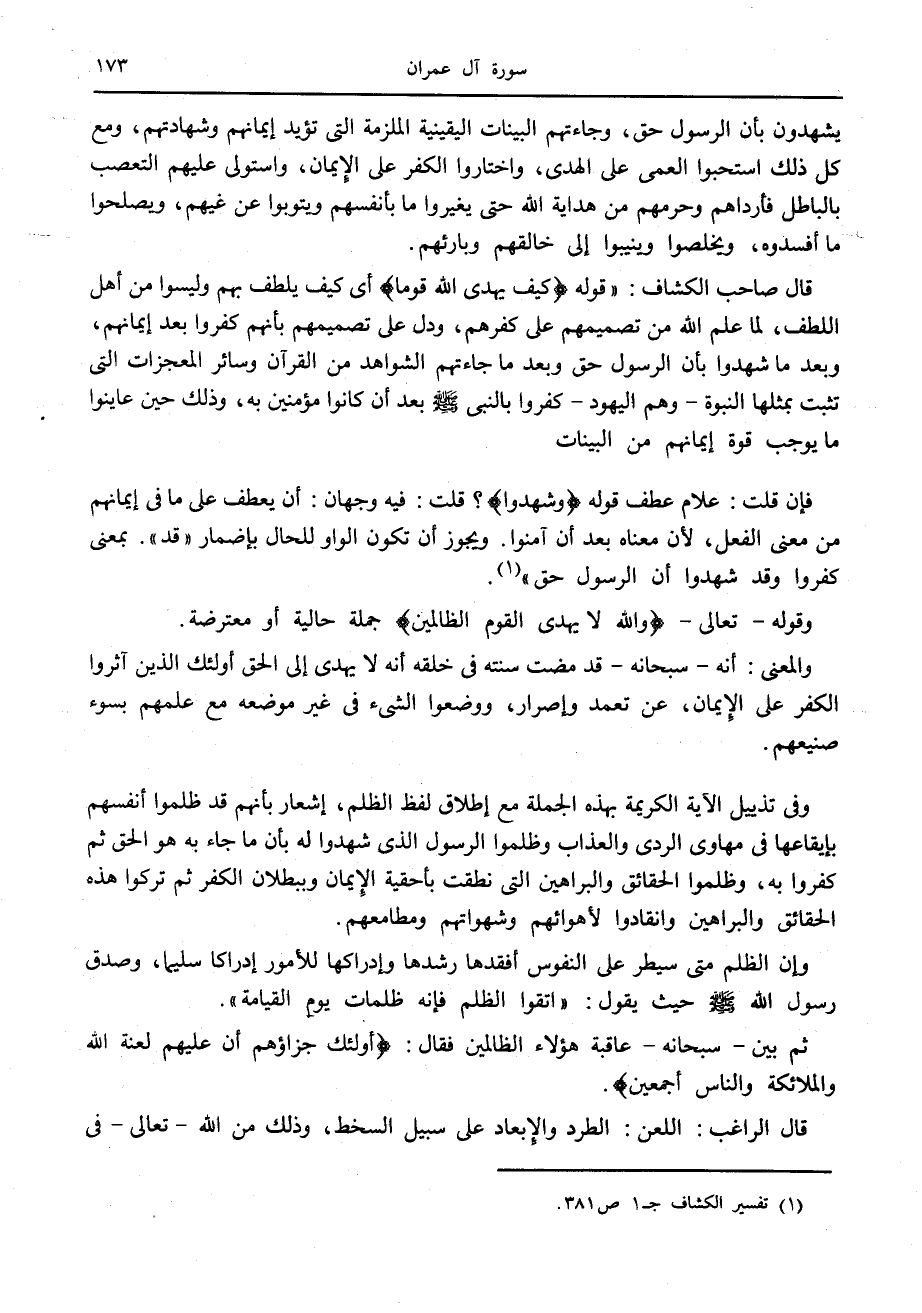 (1) تفسير الكشاف ج 1 ص 381.