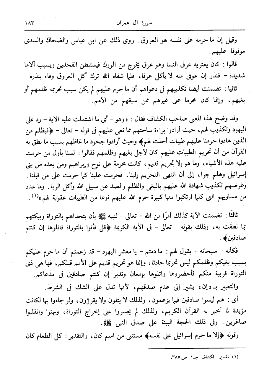 (1) تفسير الكشاف ج 1 ص 385.