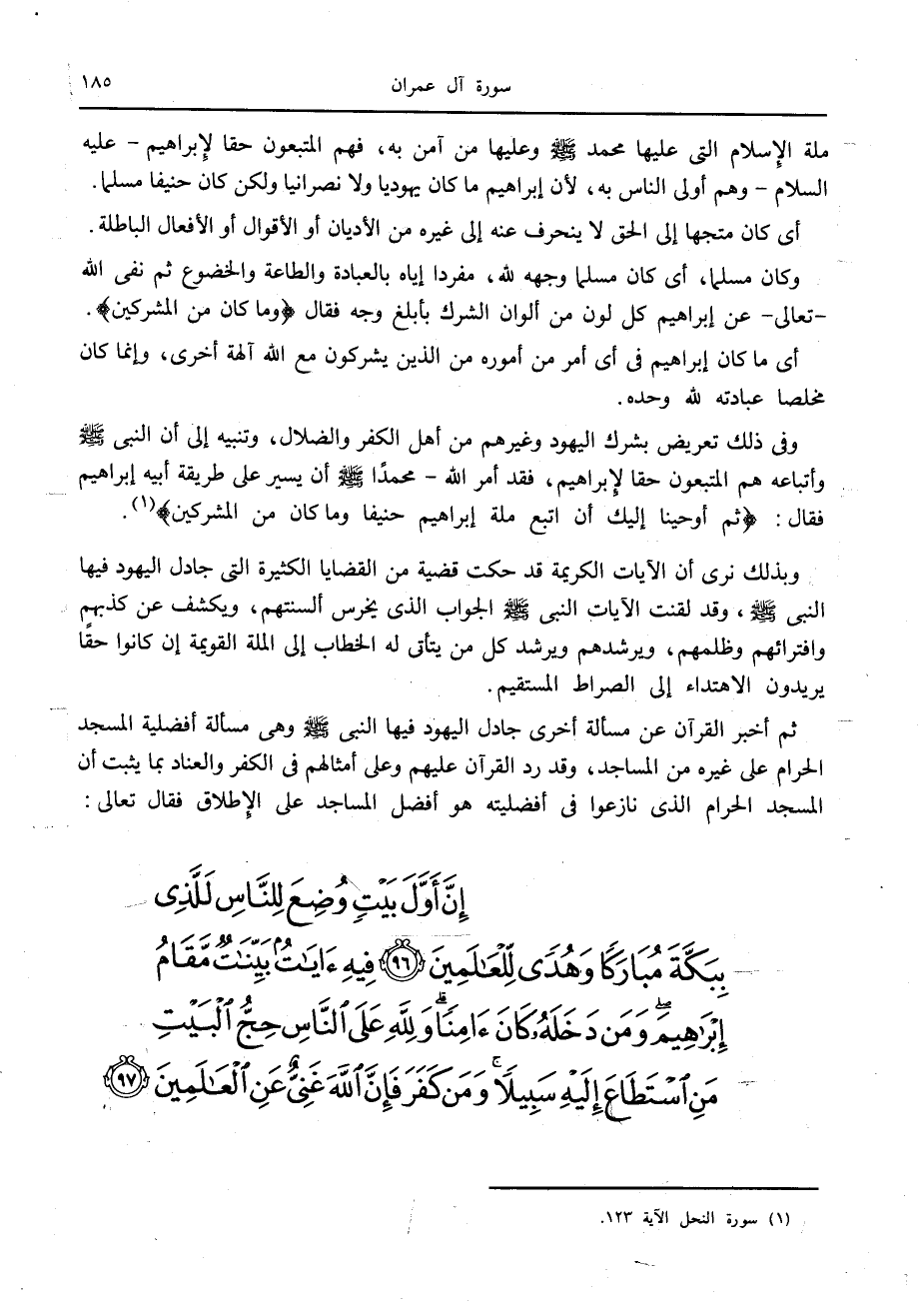 وفي ذلك تعريض بشرك اليهود وغيرهم من أهل الكفر والضلال، وتنبيه إلى أن النبي صلّى الله عليه وسلّم وأتباعه هم المتبعون حقا لإبراهيم، فقد أمر الله- محمدا صلّى الله عليه وسلّم أن يسير على طريقة أبيه إبراهيم فقال: ثُمَّ أَوْحَيْنا إِلَيْكَ أَنِ اتَّبِعْ مِلَّةَ إِبْراهِيمَ حَنِيفاً وَما كانَ مِنَ الْمُشْرِكِينَ «1» .