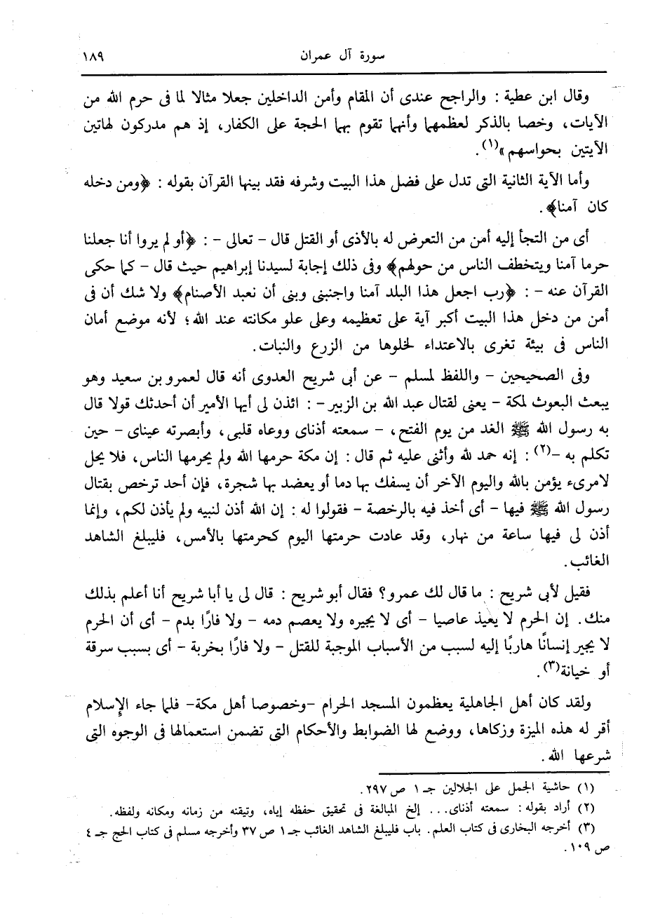 (1) حاشية الجمل على الجلالين ج 1 ص 297.