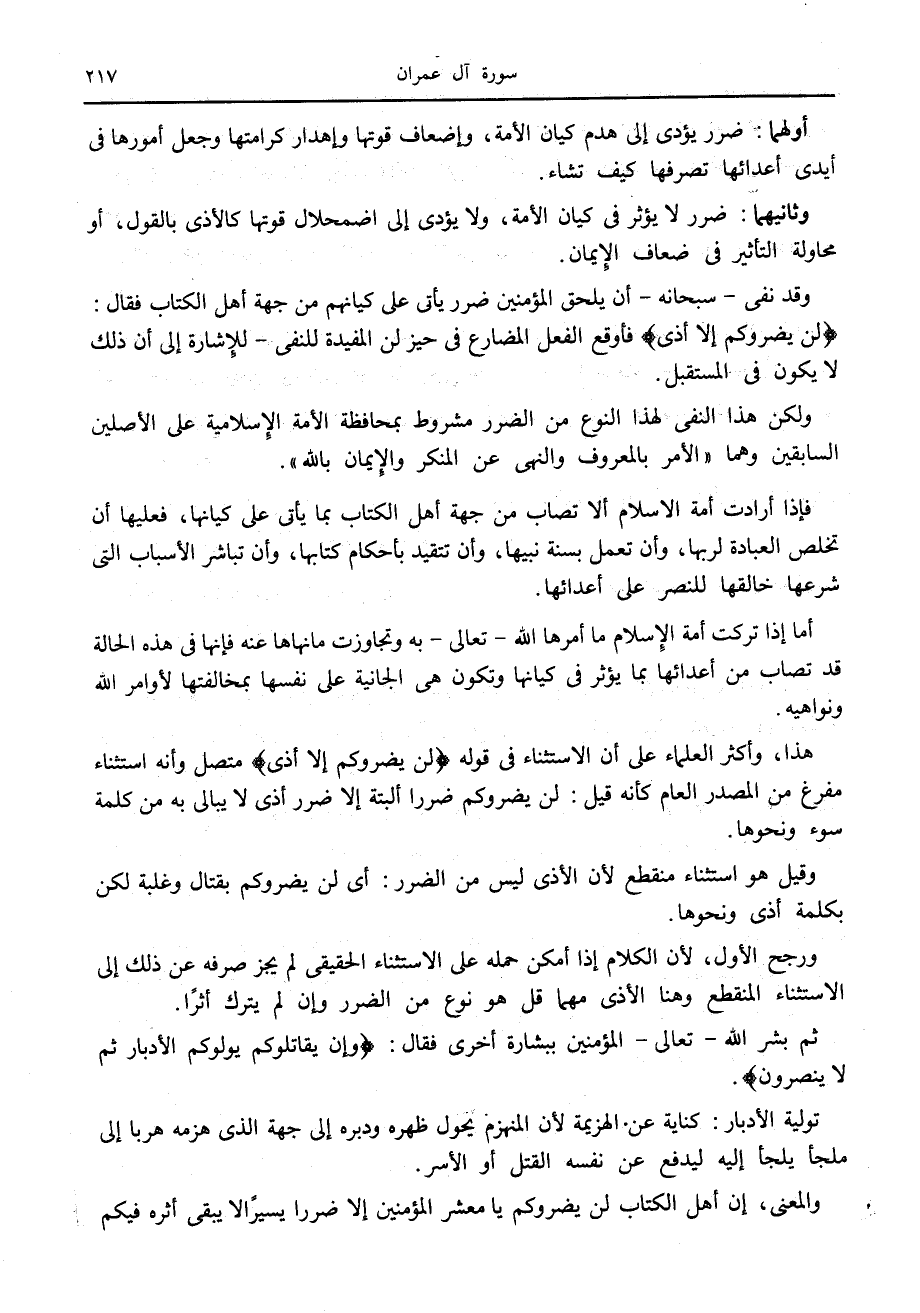 ولكن هذا النفي لهذا النوع من الضرر مشروط بمحافظة الأمة الإسلامية على الأصلين السابقين وهما «الأمر بالمعروف والنهى عن المنكر والإيمان بالله» .