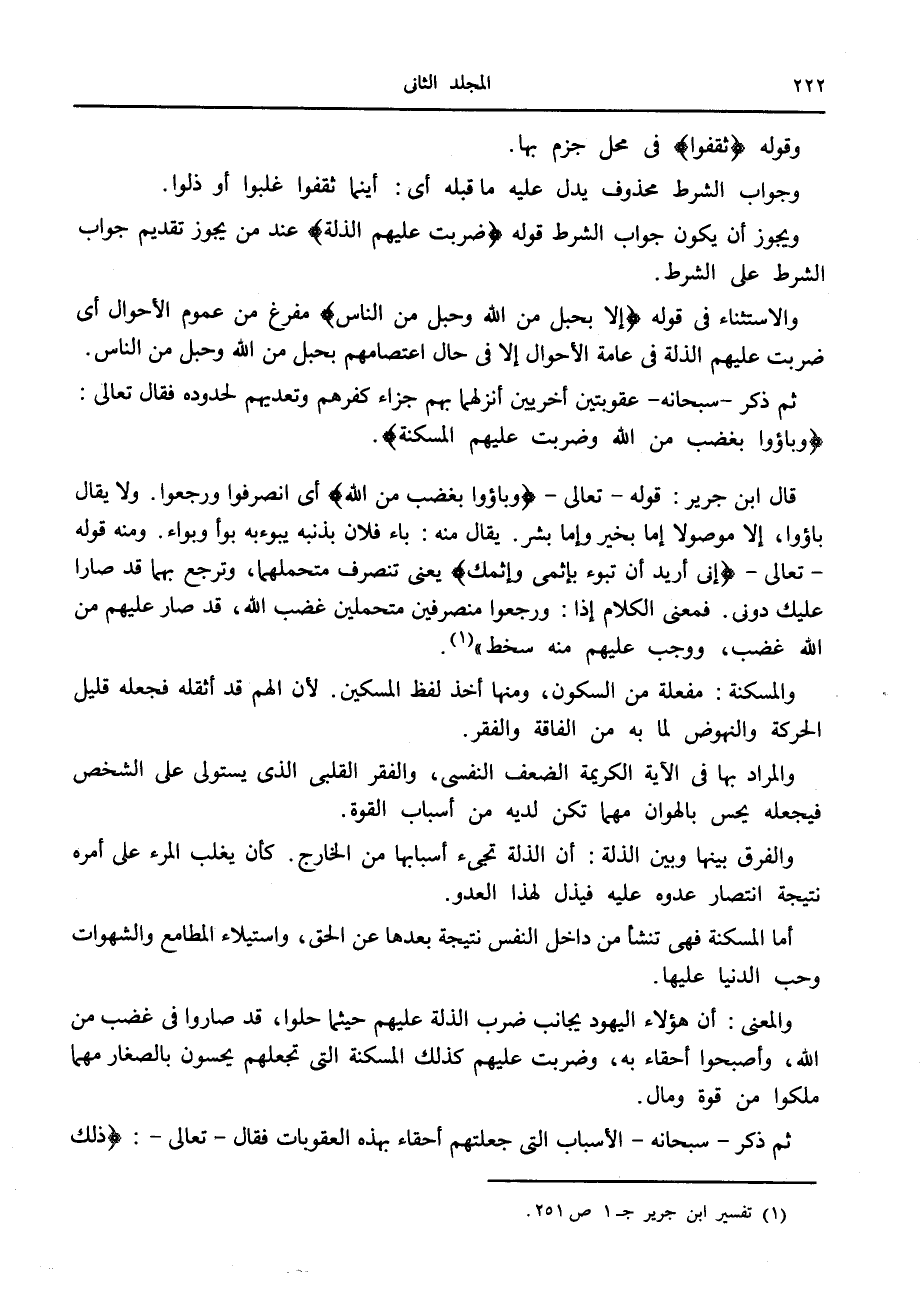 والمعنى: أن هؤلاء اليهود يجانب ضرب الذلة عليهم حيثما حلوا، قد صاروا في غضب من الله، وأصبحوا أحقاء به، وضربت عليهم كذلك المسكنة التي تجعلهم يحسون بالصغار مهما ملكوا من قوة ومال.