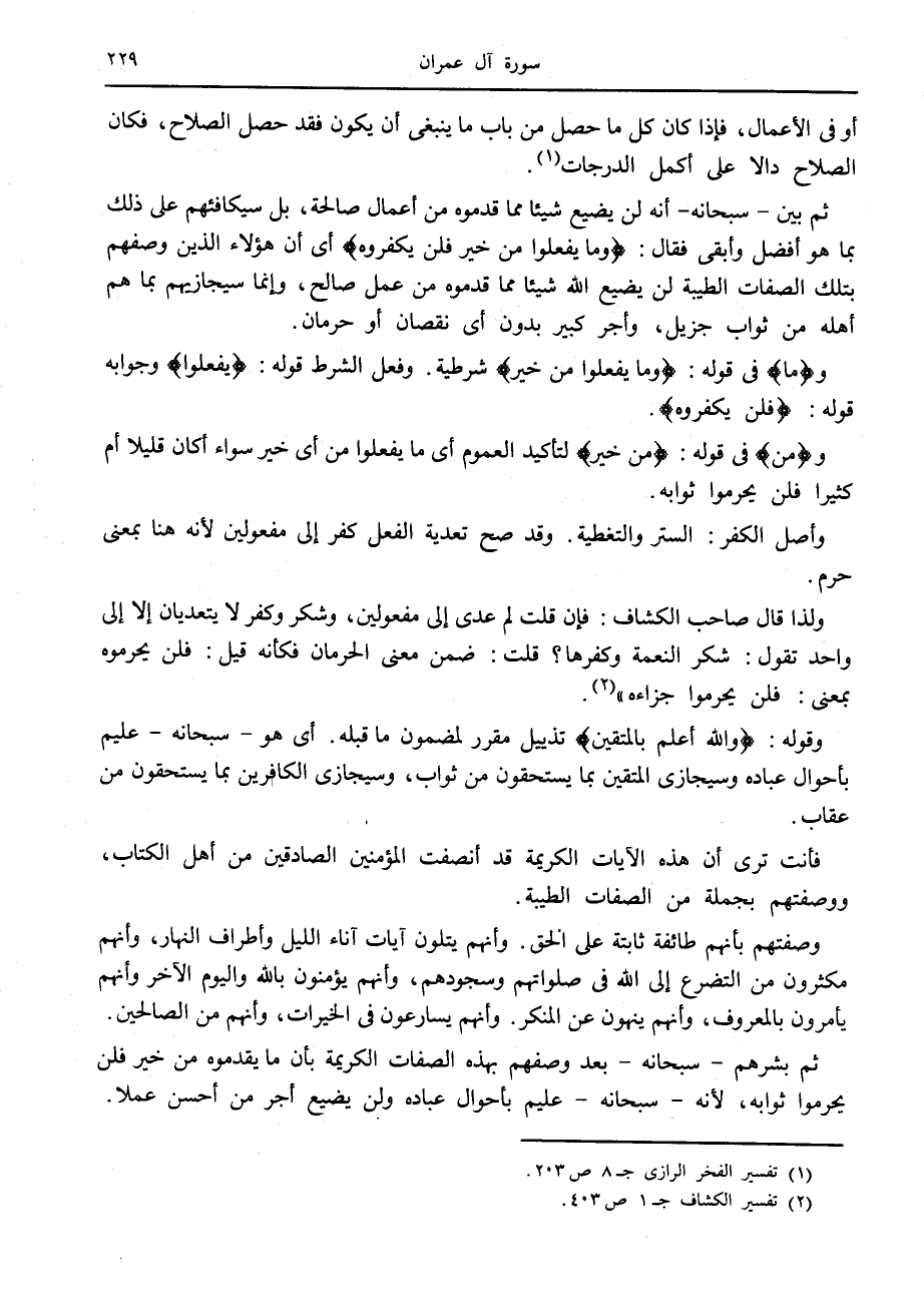 (1) تفسير الفخر الرازي ج 8 ص 203.