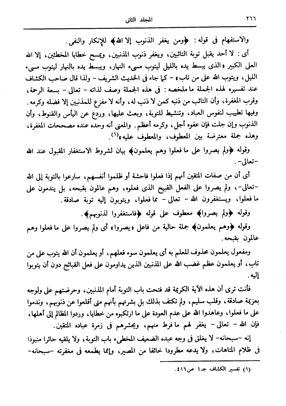 (1) تفسير الكشاف ج 1 ص 416.
