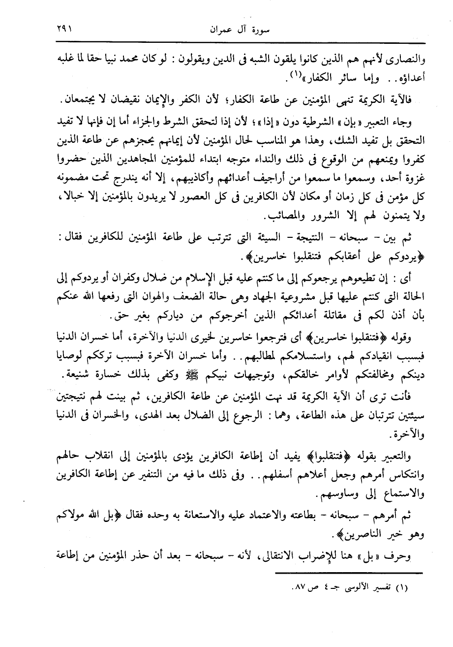 (1) تفسير الآلوسى ج 4 ص 87.