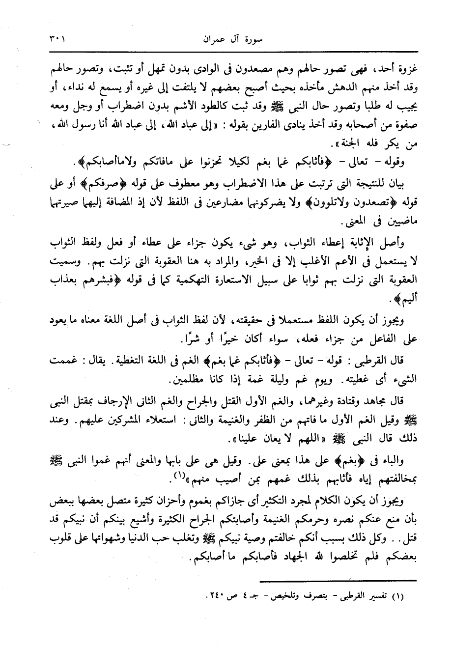 (1) تفسير القرطبي- بتصرف وتلخيص- ج 4 ص 240.