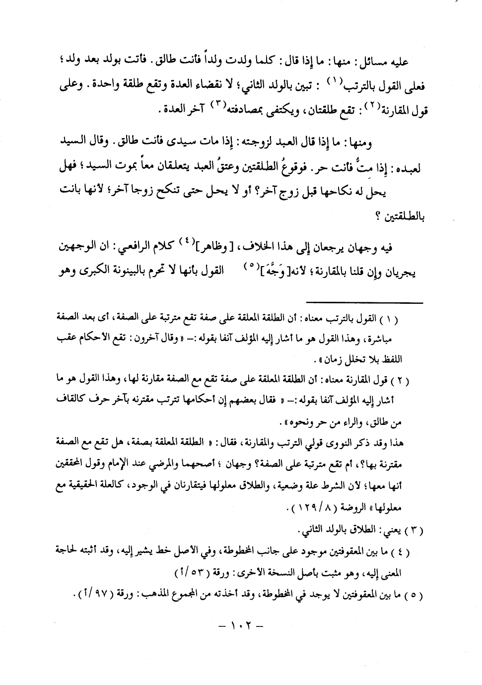 (¬1) القول بالترتب معناه: أن الطلقة المعلقة على صفة تقع مترتبة على الصفة، أى بعد الصفة مباشرة، وهذا القول هو ما أشار إِليه المؤلف آنفا بقوله: - "وقال آخرون: تقع الأحكام عقب اللفظ بلا تخلل زمان".