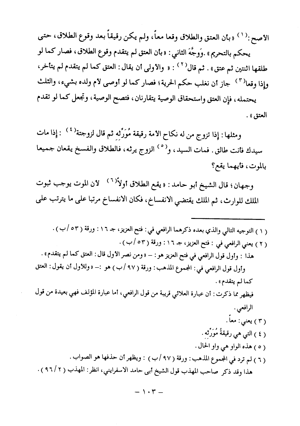 وأول قول الرافعي في: المجموع المذهب: ورقة (97/ ب) هو: - " وللأول أن يقول: العتق كما لم يتقدم ".