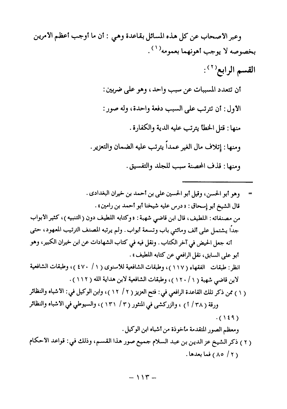 (¬1) ممن ذكر تلك القاعدة الرافعي في: فتح العزيز (2/ 12)، وابن الوكيل في: الأشباه والنظائر ورقة (38/ أ)، والزركشى في المنثور (3/ 131)، والسيوطي في الأشباه والنظائر (149).