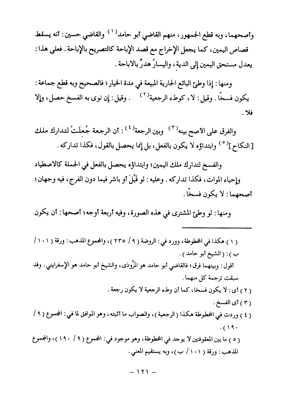 (¬4) وردت في المخطوطة هكذا (الرجعية)، والصواب ما أثبته، وهو الموافق لما في: المجموع (9/ 190).