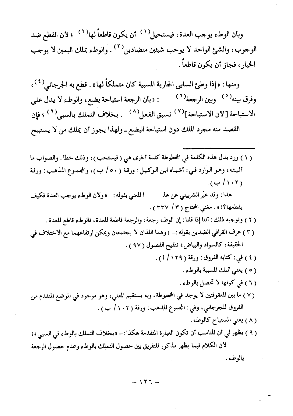 (¬9) يظهر لي أن المناسب أن تكون العبارة المتقدمة هكذا: - " بخلاف التملك بالوطء في السبي "؛ لأن الكلام فيما يظهر مذكور للتفريق بين حصول التملك بالوطء وعدم حصول الرجعة بالوطء.