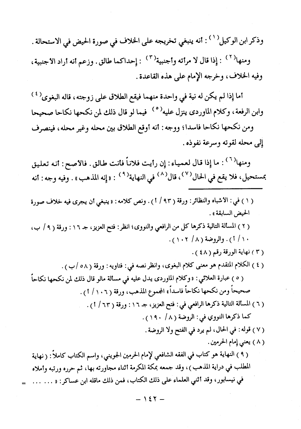 (¬9) النهاية هو كتاب في الفقه الشافعي لإِمام الحرمين الجويني، واسم الكتاب كاملاً: (نهاية المطلب في دراية المذهب)، وقد جمعه بمكة المكرمة أثناء مجاورته بها، ثم حرره ورتبه وأملاه في نيسابور، وقد أثني العلماء على ذلك الكتاب، فمن ذلك ما قله ابن عساكر: " .... =