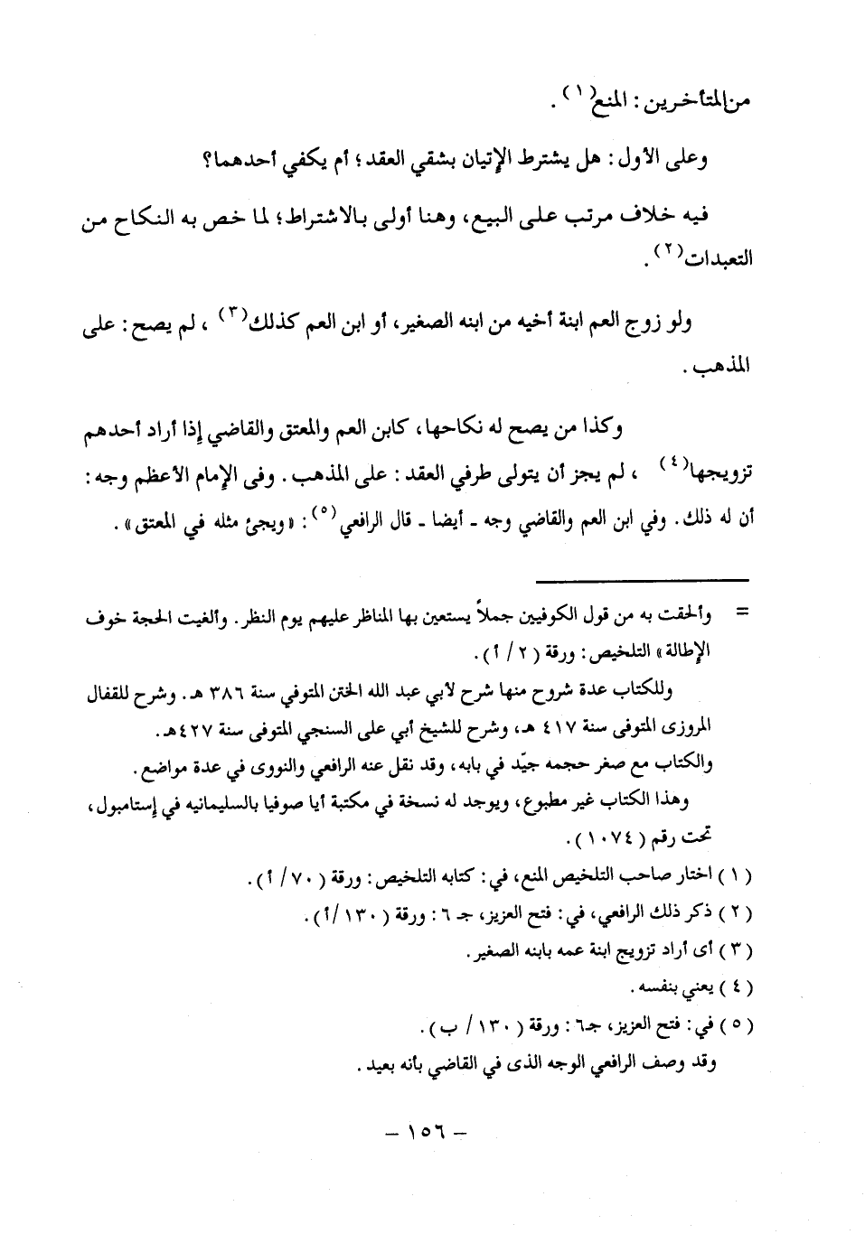 (¬1) اختار صاحب التلخيص المنع، في: كتابه التلخيص: ورقة (70 / أ).