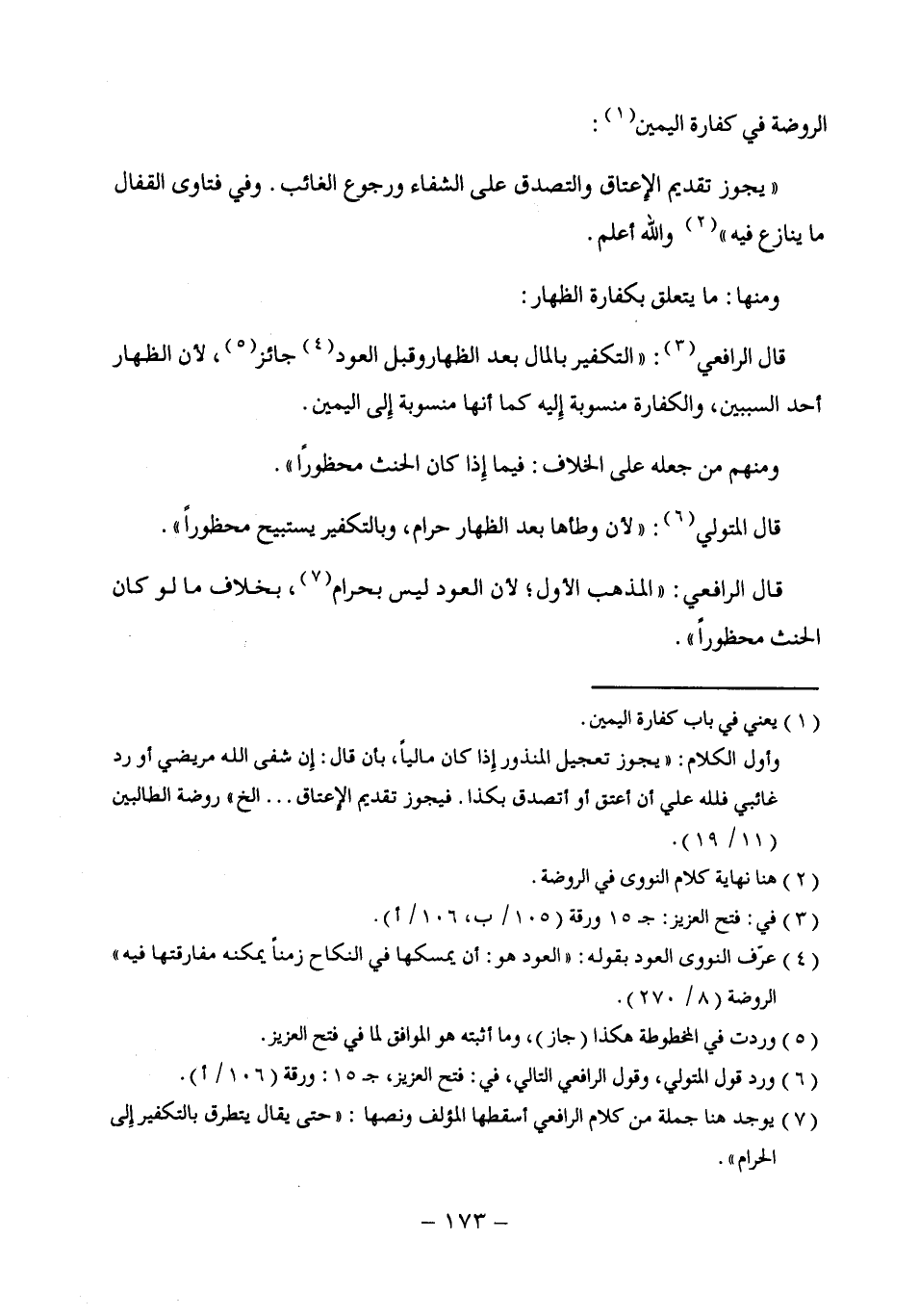 (¬7) يوجد هنا جملة من كلام الرافعي أسقطها المؤلف ونصها: "حتى يقال يتطرق بالتكفير إلى الحرام".