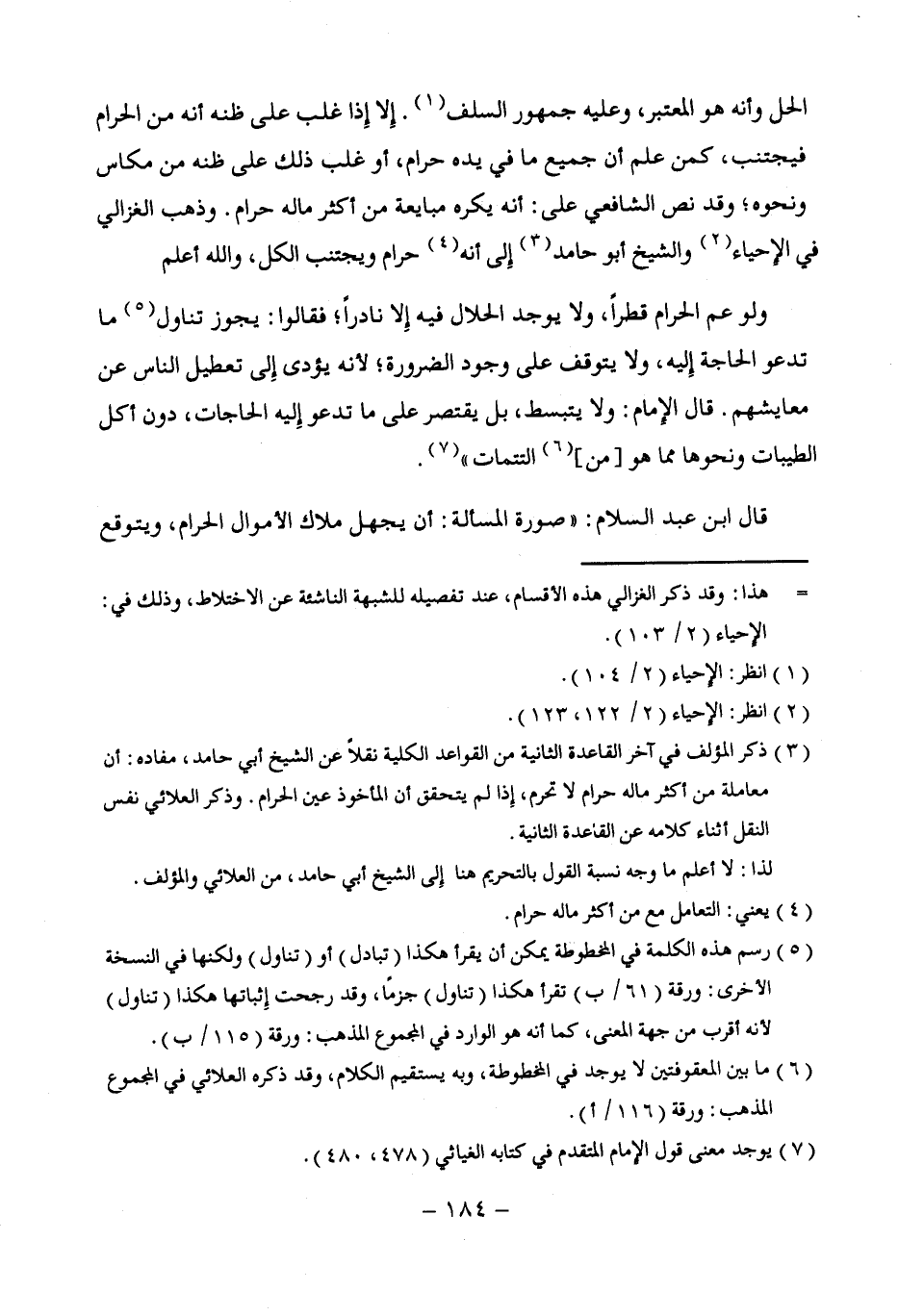 = هذا: وقد ذكر الغزالي هذه الأقسام، عند تفصيله للشبهة الناشئة عن الاختلاط، وذلك في: الإِحياء (2/ 103).