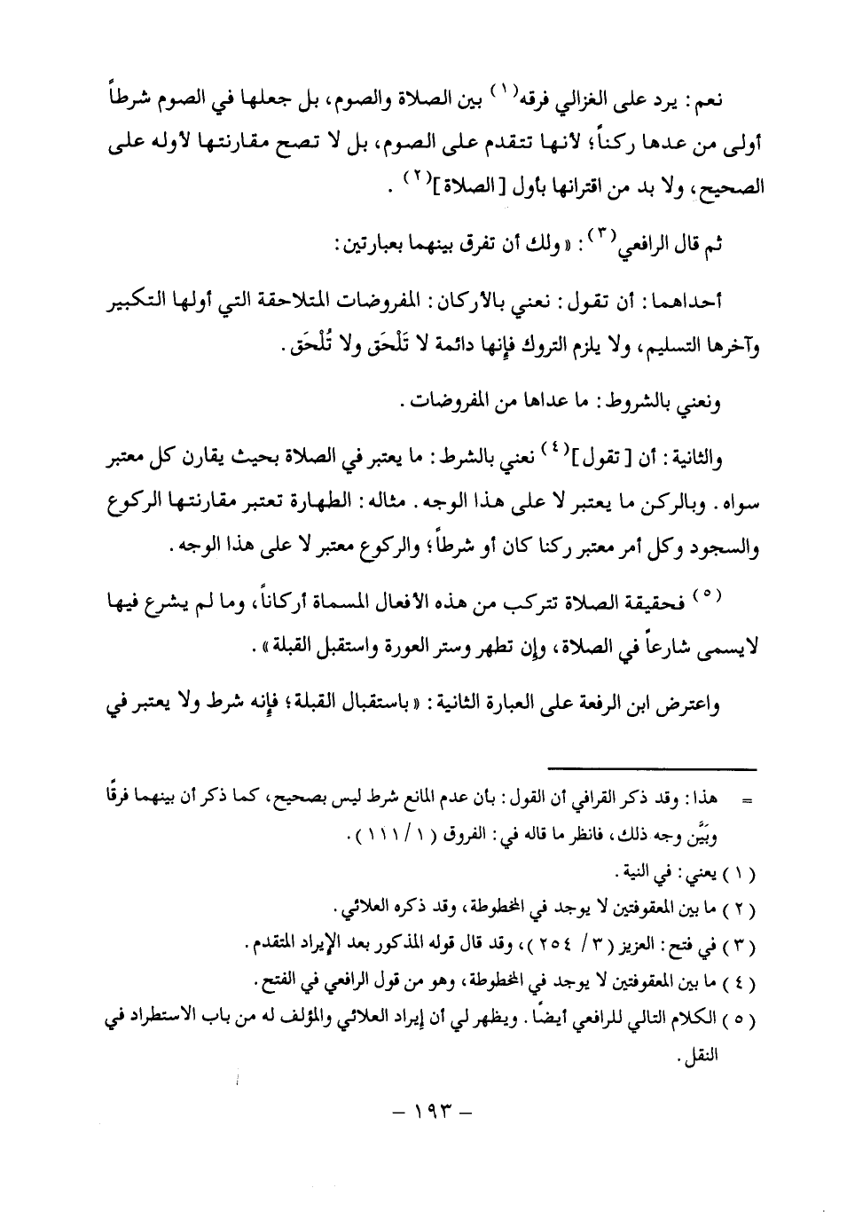 ونعني بالشروط: ما عداها من المفروضات.