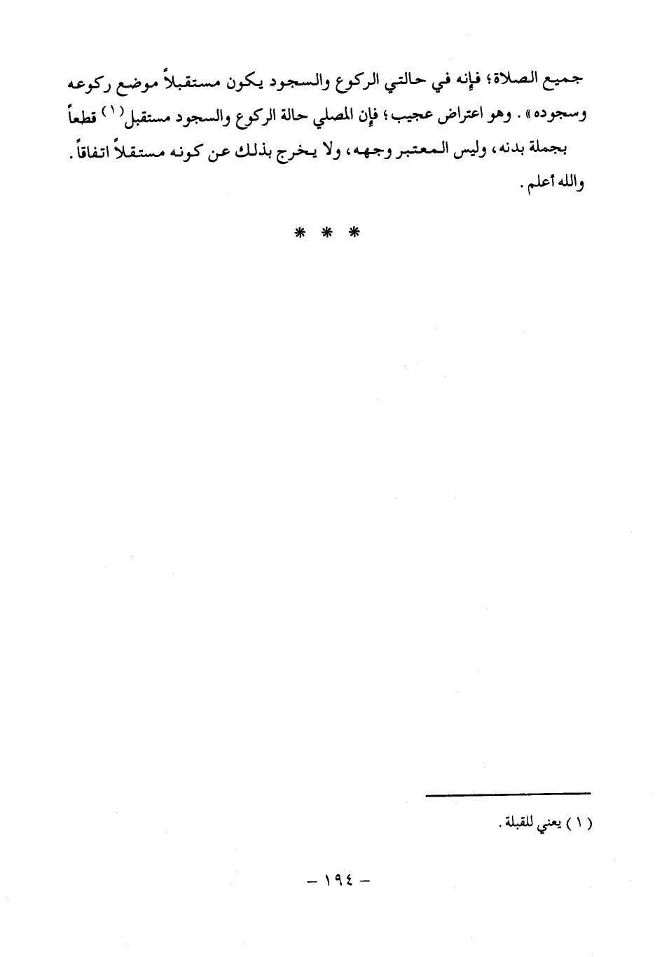 جميع الصلاة، فإِنه في حالتي الركوع والسجود يكون مستقبلاً موضع ركوعه وسجوده". وهو اعتراض عجيب، فإِن المصلي حالة الركوع والسجود مستقبل (¬1) قطعاً بجملة بدنه، وليس المعتبر وجهه، ولا يخرج بذلك عن كونه مستقلاً اتفاقاً. والله أعلم.