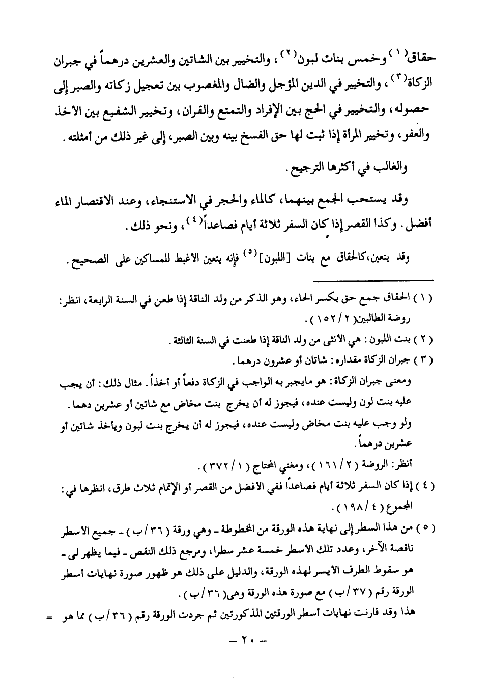 (¬3) جبران الزكاة مقداره: شاتان أو عشرون درهما.