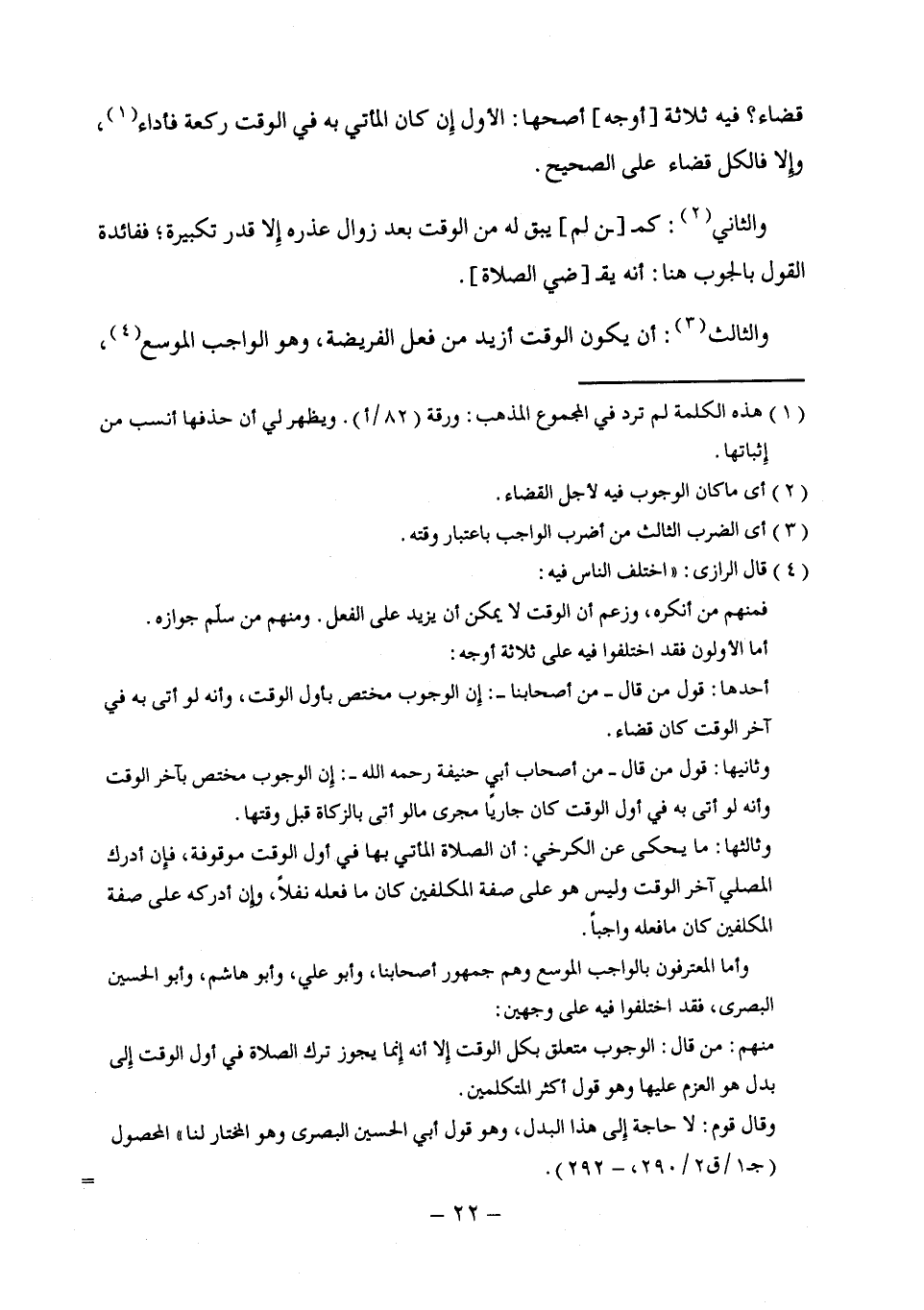 منهم: من قال: الوجوب متعلق بكل الوقت إِلا أنه إِنما يجوز ترك الصلاة في أول الوقت إِلى بدل هو العزم عليها وهو قول أكثر المتكلمين.