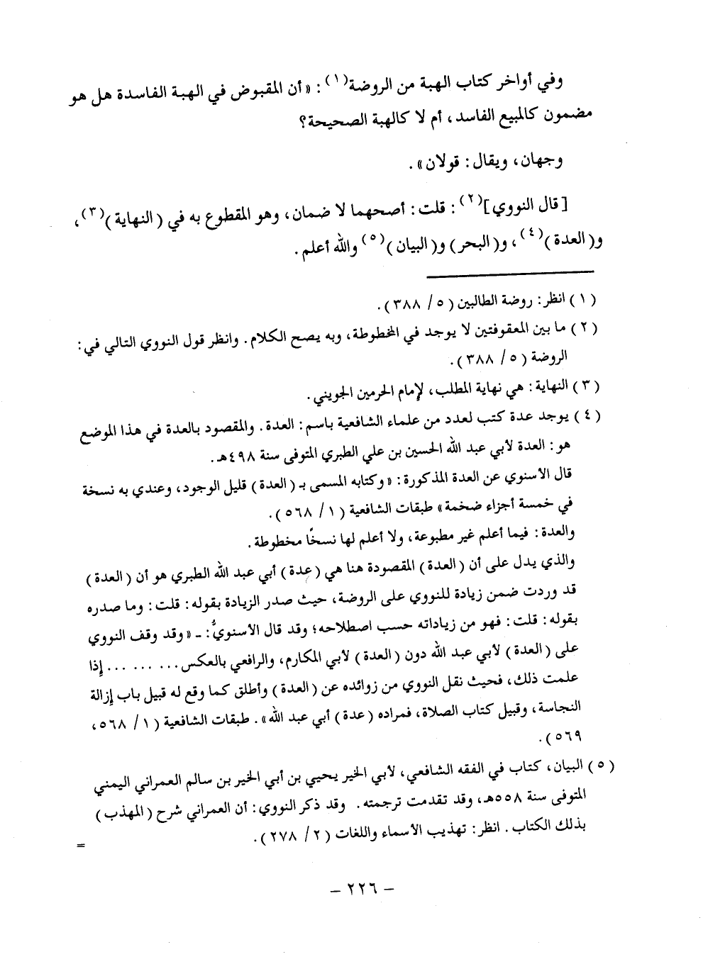 (¬4) يوجد عدة كتب لعدد من علماء الشافعية باسم: العدة. والمقصود بالعدة في هذا الموضع هو: العدة لأبي عبد الله الحسين بن علي الطبري المتوفى سنة 498 هـ.
