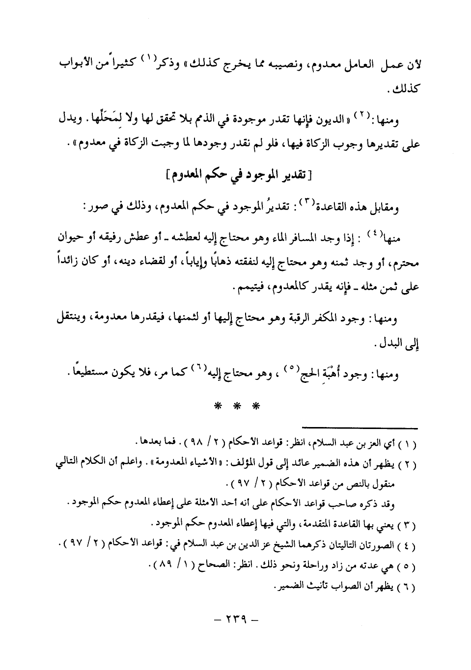 (¬2) يظهر أن هذه الضمير عائد إِلى قول المؤلف: "الأشياء المعدومة". واعلم أن الكلام التالي منقول بالنص من قواعد الأحكام (2/ 97).