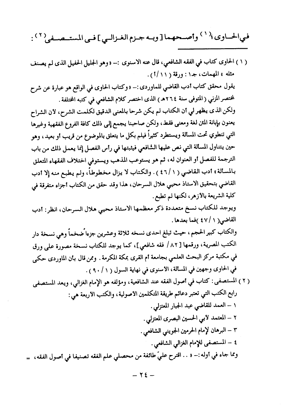 (¬1) الحاوى كتاب في الفقه الشافعي، قال عنه الأسنوى: - "وهو الجليل الحفيل الذى لم بصنف مثله" المهمات، جـ 1: ورقة (11 / أ).