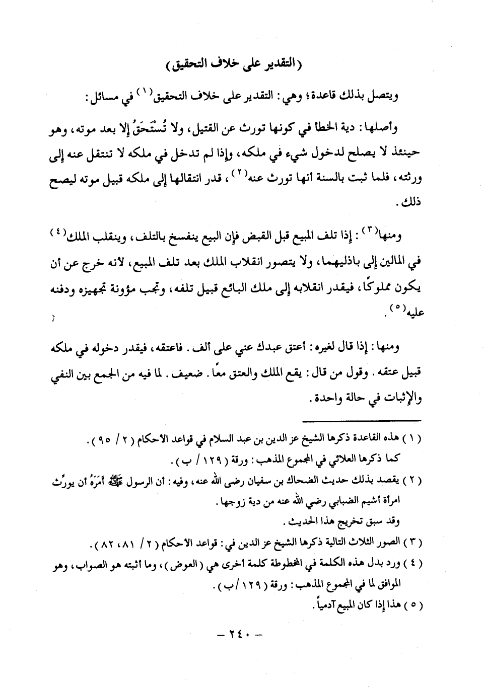 ويتصل بذلك قاعدة، وهي: التقدير على خلاف التحقيق (¬1) في مسائل: