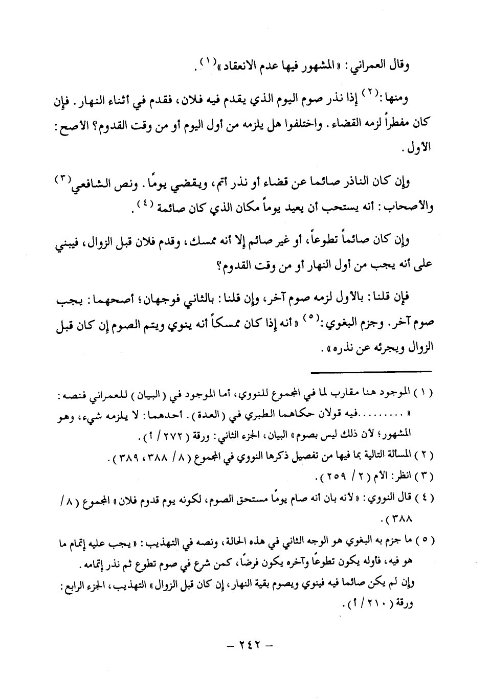 (¬1) الموجود هنا مقارب لما في المجموع للنووى، أما الموجود في (البيان) للعمراني فنصه:
