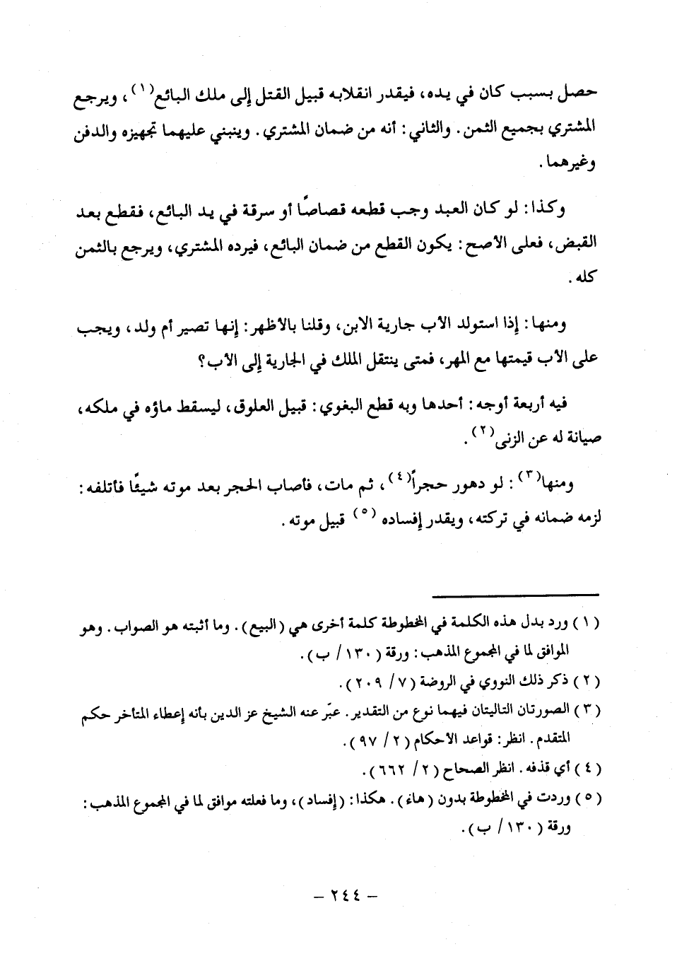(¬1) ورد بدل هذه الكلمة في المخطوطة كلمة أخرى هي (البيع). وما أثبته هو الصواب. وهو الموافق لما في المجموع المذهب: ورقة (130/ ب).