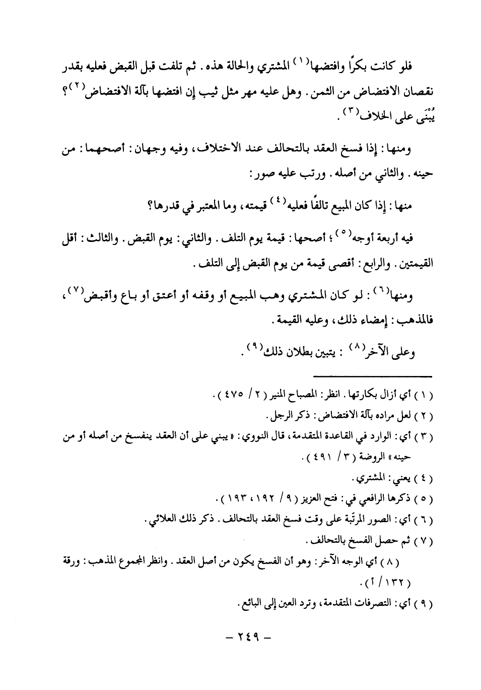 (¬8) أي الوجه الآخر: وهو أن الفسخ يكون من أصل العقد. وانظر المجموع المذهب: ورقة (132/ أ).