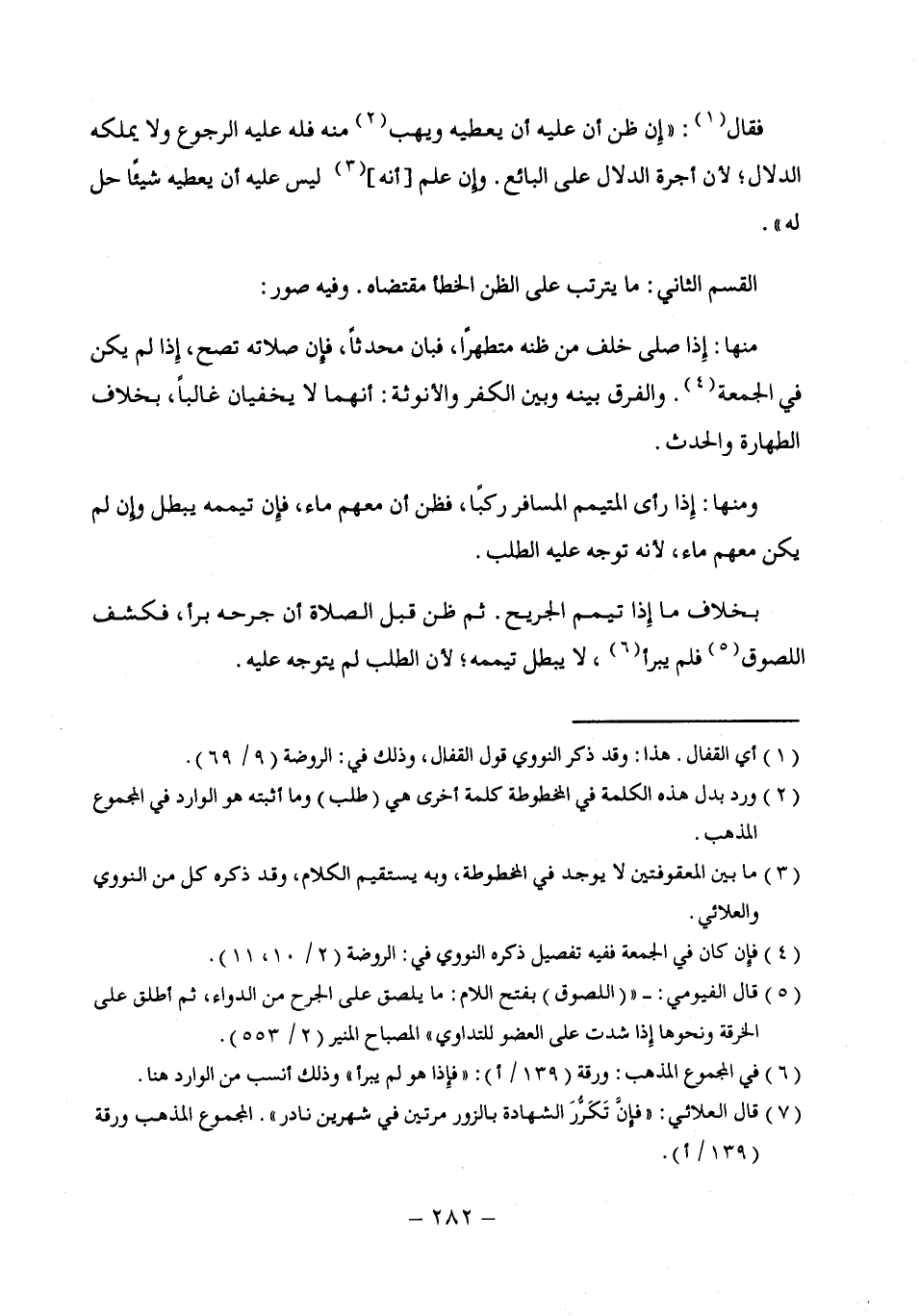 (¬2) ورد بدل هذه الكلمة في المخطوطة كلمة أخرى هي (طلب) وما أثبته هو الوارد في المجموع المذهب.