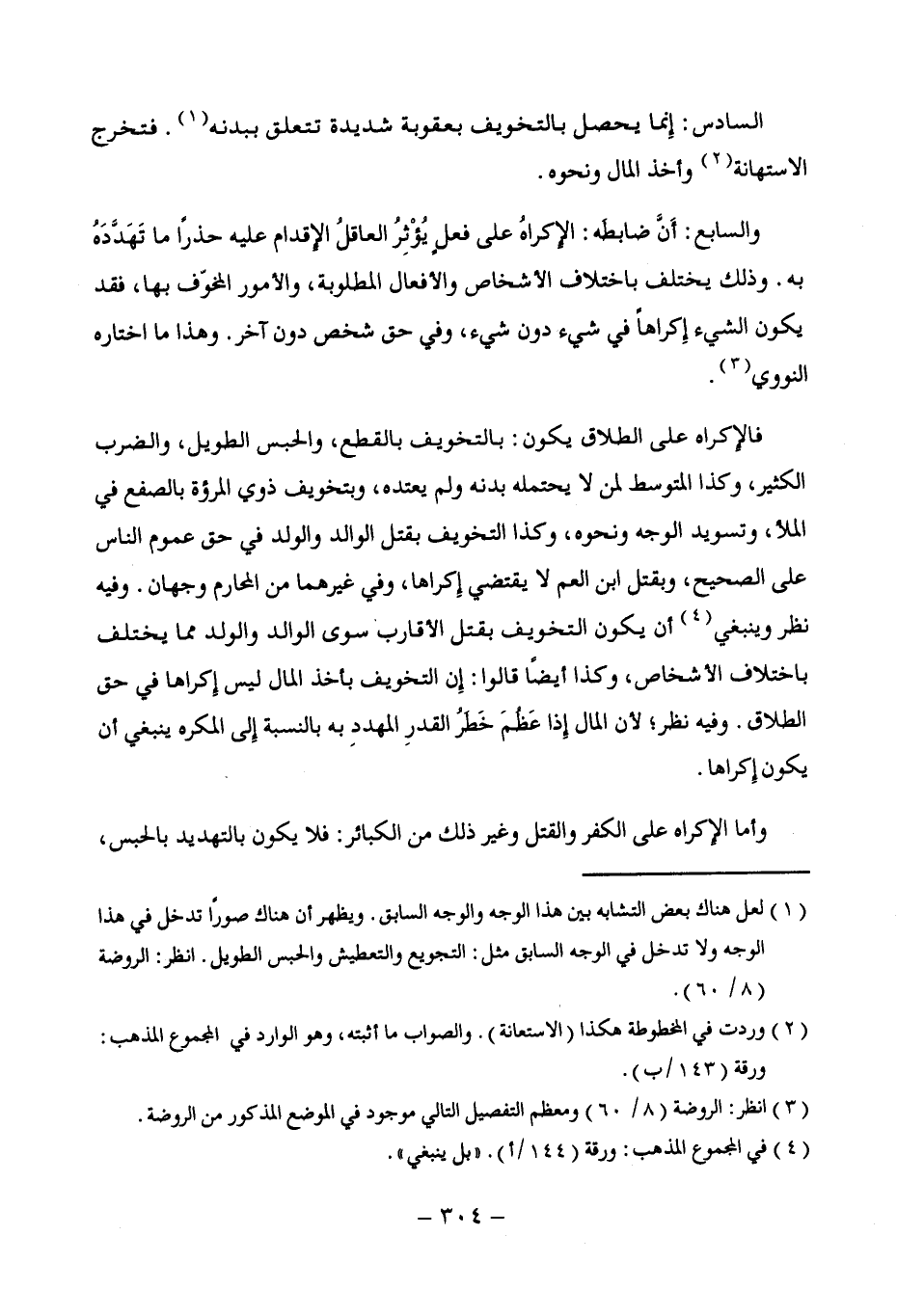 (¬1) لعل هناك بعض التشابه بين هذا الوجه والوجه السابق. ويظهر أن هناك صورًا تدخل في هذا الوجه ولا تدخل في الوجه السابق مثل: التجويع والتعطيش والحبس الطويل. انظر: الروضة (8/ 60).