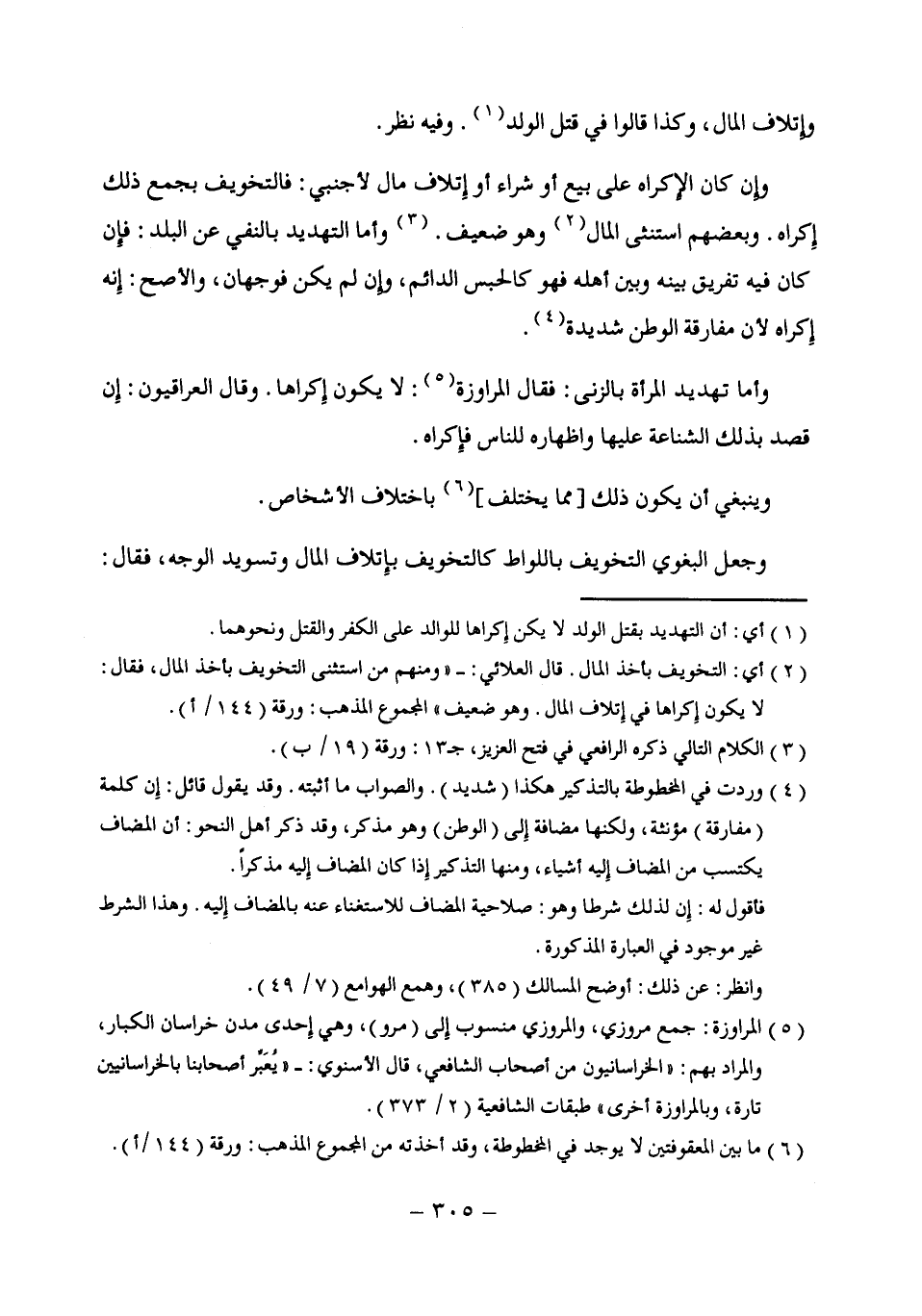 (¬2) أى: التخويف بأخذ المال. قال العلائي: "ومنهم من استثنى التخويف بأخذ المال، فقال: لا يكون إكراها في إتلاف المال. وهو ضعيف، المجموع المذهب: ورقة (144/ أ).