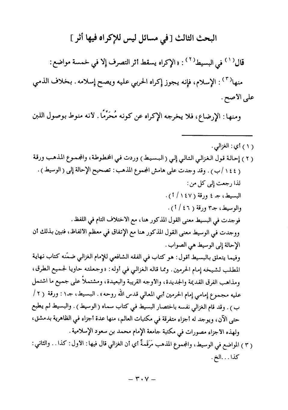 (¬2) إِحالة قول الغزالي التالي إِلي (البسيط) وردت في المخطوطة، والمجموع المذهب ورقة (144/ ب). وقد وجدت على هامش المجموع المذهب: تصحيح الإحالة إِلى (الوسيط). لذا رجعت إِلى كل من: